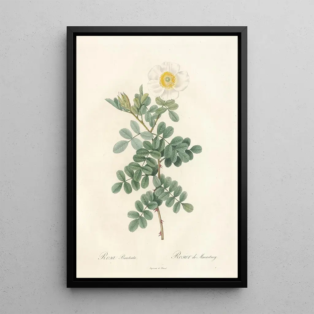 Valitsemalla taidegrafiikan Rosa Bracteata, valitset koriste-esineen, joka lisää eleganssia sisätiloihisi. Olipa kyseessä olohuone, toimisto tai makuuhuone, tämä taidegrafiikka sopii harmonisesti erilaisiin sisustustyyleihin, klassisesta nykyaikaiseen. Tulostuksen laatu takaa uskollisuuden väreihin ja yksityiskohtiin alkuperäisteoksessa, kunnioittaen Redoutén neroutta. Sen esteettinen vetovoima ja herkkä olemus tekevät siitä ihanteellisen valinnan niille, jotka haluavat rikastuttaa elinympäristöään luonnon ja ajattoman kauneuden kosketuksella.