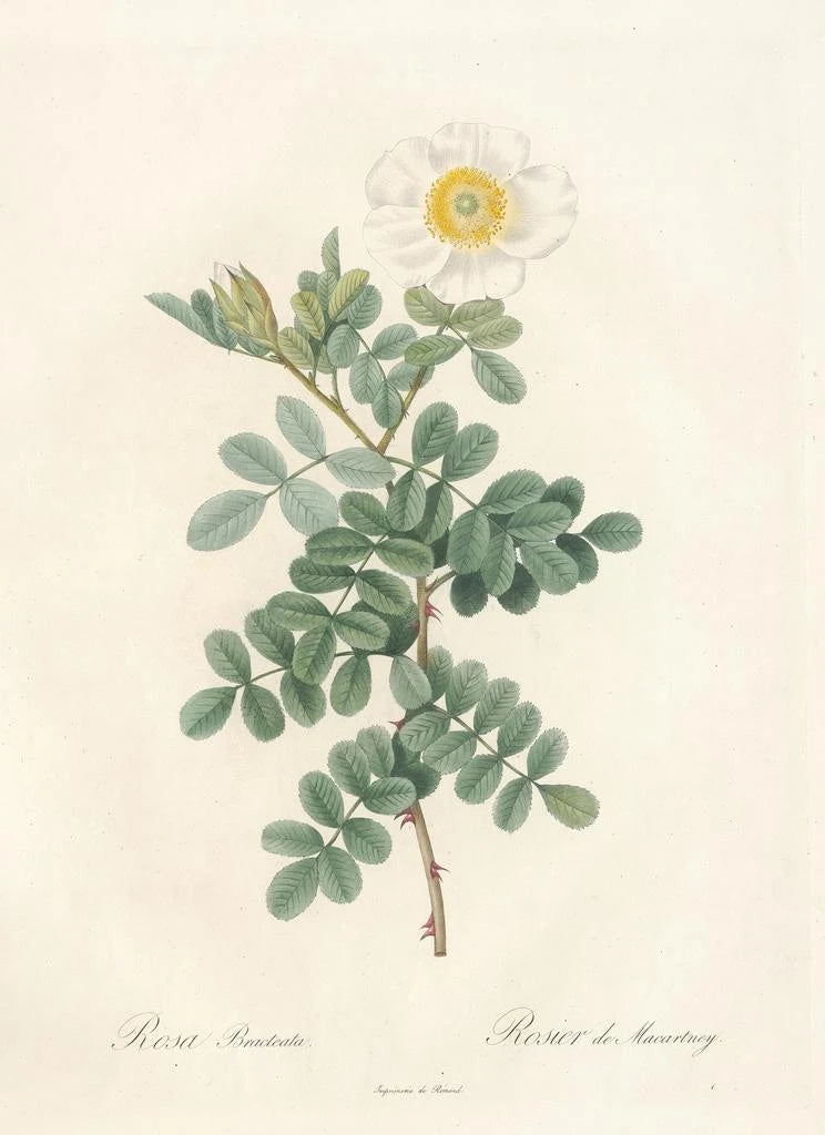 Pierre Joseph Redouté, jota kutsutaan "Kukkien Raphaeliksi", on ikoninen hahmo 1700-luvun kasvi- ja kukkamaalauksessa. Syntynyt vuonna 1759 Belgiassa, hän asettui Pariisiin, missä hänestä tuli hovin virallinen kukkamaalaaja. Hänet vaikutti neoklassinen ja romantiikkainen suuntaus, ja Redouté erikoistui kasvien ja kukkien tarkan tieteellisen esittämiseen. Hänen teoksensa, kuten Rosa Bracteata, todistavat hänen poikkeuksellisesta lahjakkuudestaan ja yksityiskohtien huolellisuudestaan. Hän onnistui yhdistämään taiteen ja tieteen, edistäen kasvitutkimusten suosiota aikanaan ja jätti kestävän perinnön kukkataiteen maailmaan.