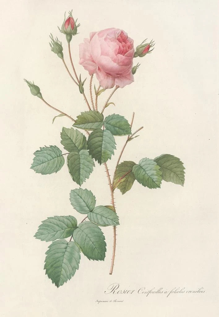 Rosa Centifolia Crenata : kaunis kukkainen taidegrafiikka, jota voi ihailla
