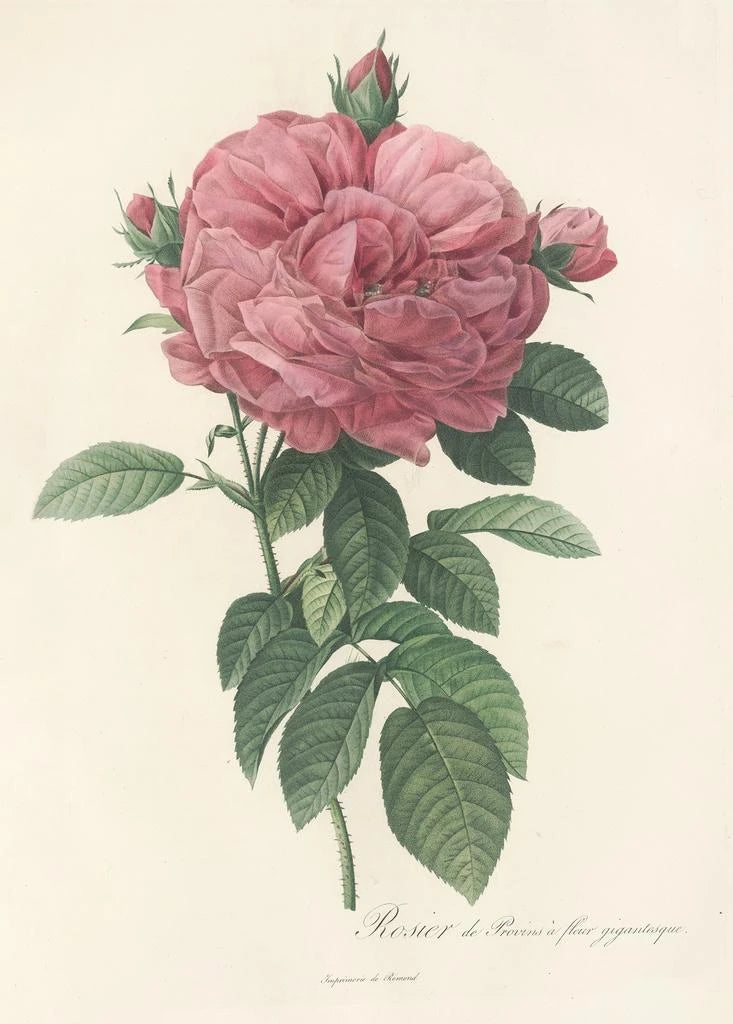 Taidegrafiikka Rosa Gallica Flore giganteo on vaikuttava teos, joka korostaa ruusujen loistokkuutta kaikessa majesteetissaan. Värikkäät sävyt ja yksityiskohtaiset terälehtien yksityiskohdat luovat kolmiulotteisuuden ja syvyyden vaikutelman, tehden tästä taulusta lähes elävän. Vesiväritekniikan ansiosta Pierre Joseph Redouté onnistuu välittämään kukkivien sävyjen hienostuneisuuden ja rikkauden. Tämän teoksen tunnelma on kuin rehevässä puutarhassa, jossa jokainen ruusu näyttää kukoistavan lempeän auringon alla, kutsuen unelmoimaan ja ihailemaan.