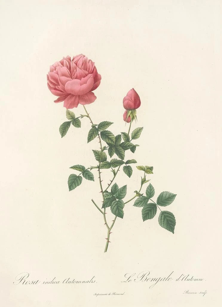 Pierre Joseph Redouté on 1700-luvun kasvitieteen merkittävä hahmo, tunnettu vertaansa vailla olevasta tarkkuudestaan kuvissaan. Hänen teoksensa, usein inspiroituneina kuninkaallisten puutarhojen rehevästä luonnosta, heijastavat syvää kunnioitustaan kasvitiedettä kohtaan ja halua vangita kasvien kauneus. Redouté vaikutti moniin taiteilijoihin ja tiedemiehiin, vakiinnuttaen asemansa kasvitieteellisen taidegrafiikan alalla. Hänen teoksensa, kuten Rosa Indica Automnalis, ovat tulleet kasvitieteen ja taiteen harrastajien viitepisteiksi.