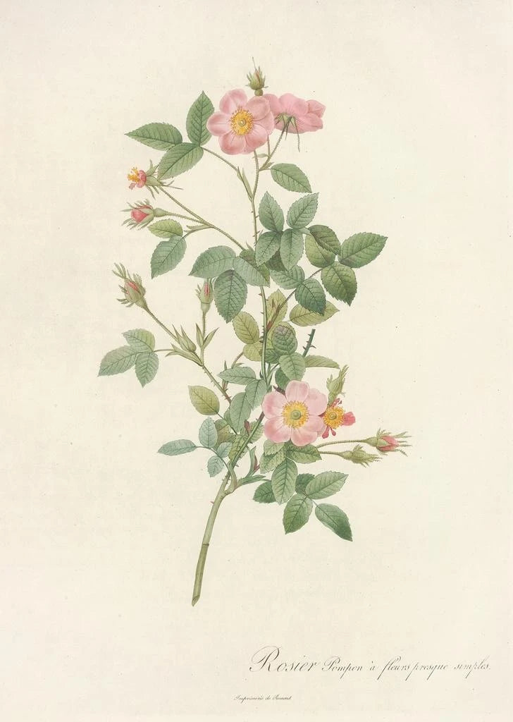 Taidetuloste | Rosa Pomponia Flore Subsimplici - Pierre Joseph Redouté