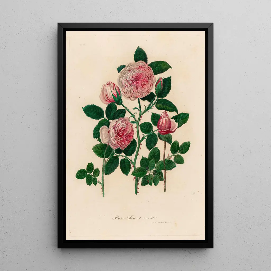 Rosa thea ja variet -taidegrafiikka on koristeellinen valinta, joka lisää väriä ja eloa tilaan. Ihanteellinen olohuoneeseen, toimistoon tai makuuhuoneeseen, tämä kangas sopii erilaisiin sisustustyyleihin, klassisesta nykyaikaiseen. Tulostuksen laatu takaa upean tarkkuuden alkuperäisteoksen yksityiskohdissa, samalla tarjoten visuaalisen vetovoiman. Sisustukseesi integroimalla tämän teoksen valitset ei vain esteettisen kappaleen, vaan myös kunnianosoituksen kukkivien kasvien kauneudelle, joka viehättää kaikkia taiteen ystäviä.