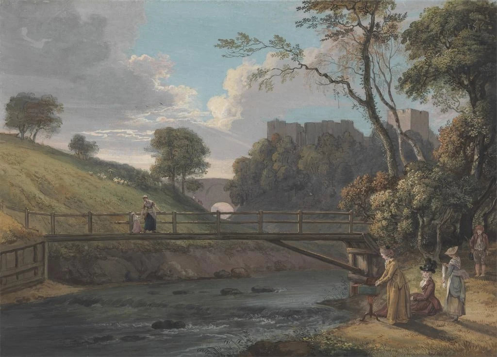 Paul Sandby, usein pidetty brittiläisen maisemamaalauksen isänä, osasi yhdistää akvarellipiirroksen tradition moderniin herkkyyteen. 1700-luvulla aktiivinen taiteilija vaikutti aikansa suurilta mestareilta, samalla kehittäen ainutlaatuisen tyylin, joka korostaa skotlantilaisten maisemien kauneutta. Hänen teoksensa, kuten "Château de Roslin Midlothian", todistavat hänen rakkauttaan luontoon ja haluaan vangita ohikiitäviä hetkiä. Sandby oli myös keskeisessä roolissa akvarellitekniikan vakiinnuttamisessa arvostettuna mediumpänä, avaten tien monille tuleville taiteilijoille.