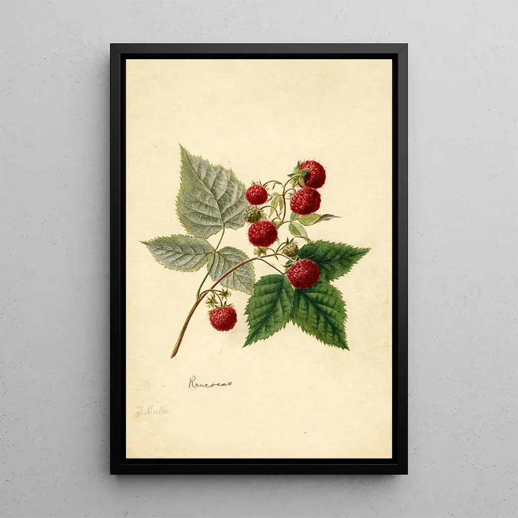 Frank Mullerin Rubus Rancocas -taidegrafiikka herättää eloon värikkään maailman, jossa luonto paljastuu uudella tavalla. Loistavat värit ja dynaamiset muodot lomittuvat luoden kiehtovan koostumuksen. Taiteilija käyttää maalaustekniikoita, jotka luovat liikkeen vaikutelman, ikään kuin kankaan elementit heräisivät eloon. Punaisen ja vihreän sävyt kohtaavat rohkeasti, kun taas kasvien ja hedelmien hienovaraiset yksityiskohdat lisäävät teokseen kosketuksellisen ulottuvuuden. Tämä kangas on juhla kasviston rikkaudesta, kutsuen aistimatkalle.