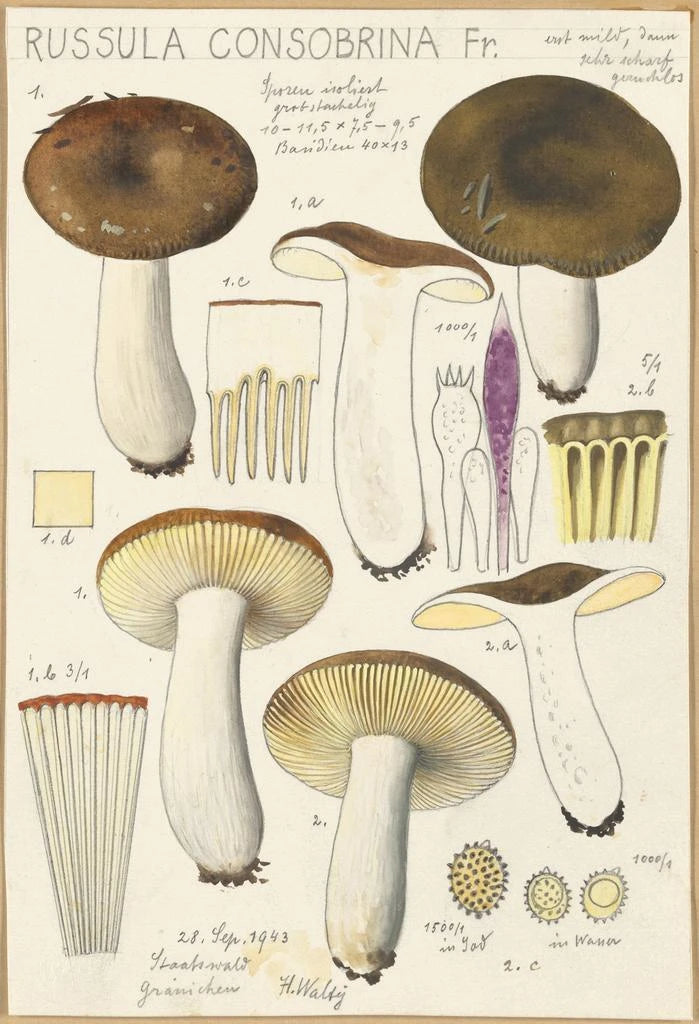 Hans Baldung, tunnetaan myös nimellä Hans Baldung Grien, on yksi saksalaisen renessanssin ikonisimmista hahmoista. 1500-luvun alussa aktiivinen taiteilija, joka vaikutteita Dürerin teoksista ja kehitti ainutlaatuisen tyylin, yhdistäen realismia ja fantasiamaailman elementtejä. Baldung on erityisen tunnettu luonnon ja mytologisten teemojen esittämisestä, jotka paljastavat hänen erityisen herkkyytensä luonnon maailmalle. Hänen kykynsä vangita sienien, kuten Russula consobrina, ohikiitävää kauneutta, osoittaa hänen taitonsa yhdistää taide ja tieteellinen havainnointi, tehden hänestä aikansa merkittävän taiteilijan.