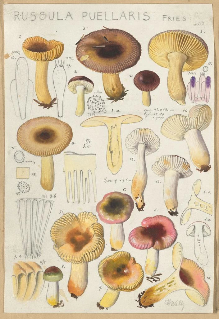 Russula puellaries, taidegrafiikka Hans Baldungin merkittävästä teoksesta, kuljettaa meidät maailmaan, jossa luonto ilmaisee koko rikkautensa. Tämä värikäs taidegrafiikka korostaa herkän sävyisiä sieniä, ympäröitynä rehevällä kasvillisuudella. Kompositio on harmoninen, jokainen elementti huolellisesti aseteltu luomaan elävän taideteoksen. Pastellivärit ja hienovaraiset varjostukset antavat teokselle pehmeän ja rauhoittavan tunnelman. Baldung onnistuu vangitsemaan luonnon ohikiitävän kauneuden, kutsuen meitä arvostamaan tämän salaperäisen maailman jokaista yksityiskohtaa.