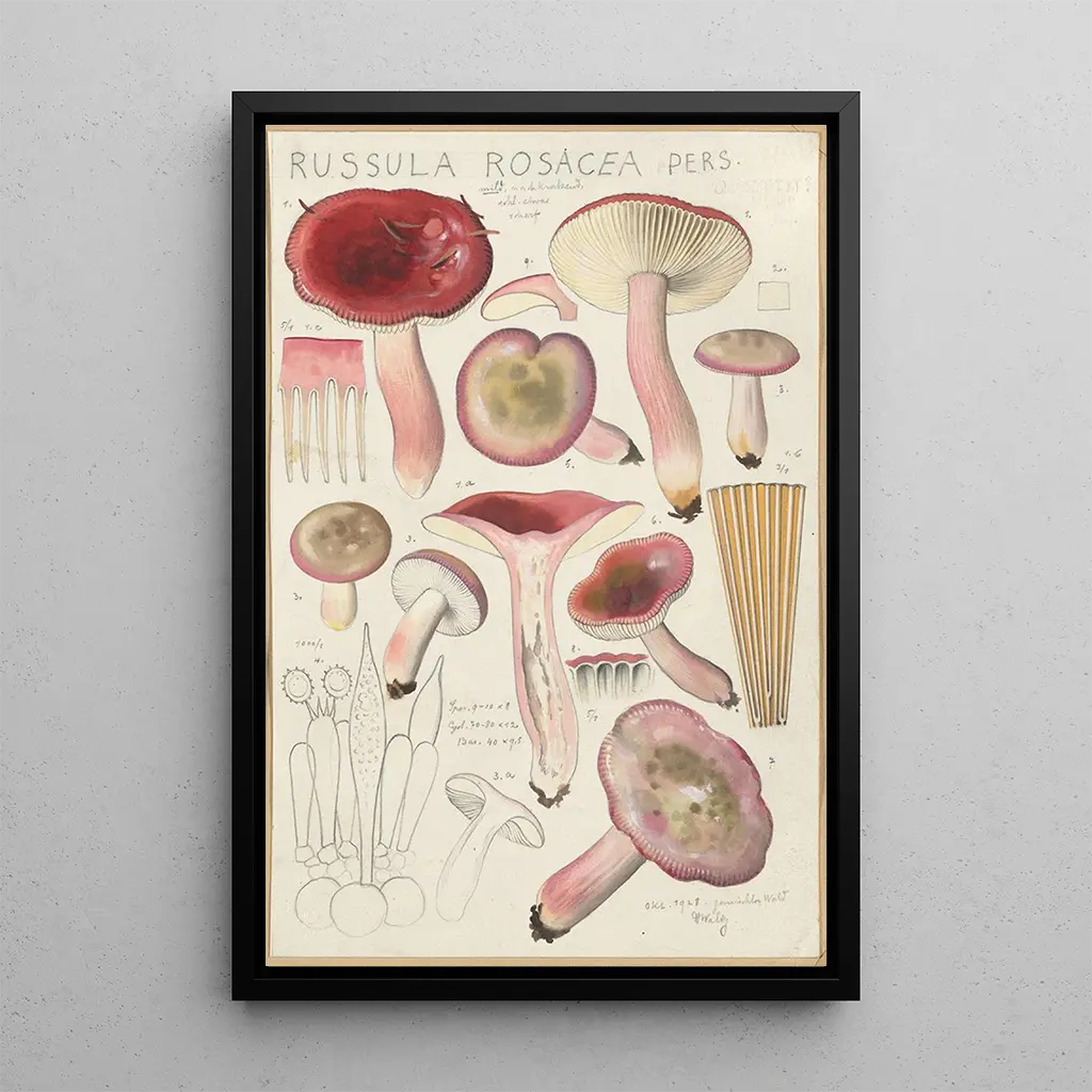 Valitsemalla taidegrafiikan Russula rosacea, valitset koriste-esineen, joka lisää eleganssia kotiisi. Olipa kyseessä olohuone, työhuone tai makuuhuone, tämä taidegrafiikka viehättää laadullaan ja uskollisuudellaan alkuperäiselle teokselle. Sen esteettinen vetovoima piilee kyvyssä herättää aisteja ja herättää uteliaisuutta. Hienovaraiset sävyt ja orgaaniset muodot tekevät siitä ihanteellisen sisustuselementin, joka luo lämpimän ja kutsuvan ilmapiirin. Sisällyttämällä tämän taidegrafiikan tilaan, kutsut luonnon kauneuden kukoistamaan kotonasi.
