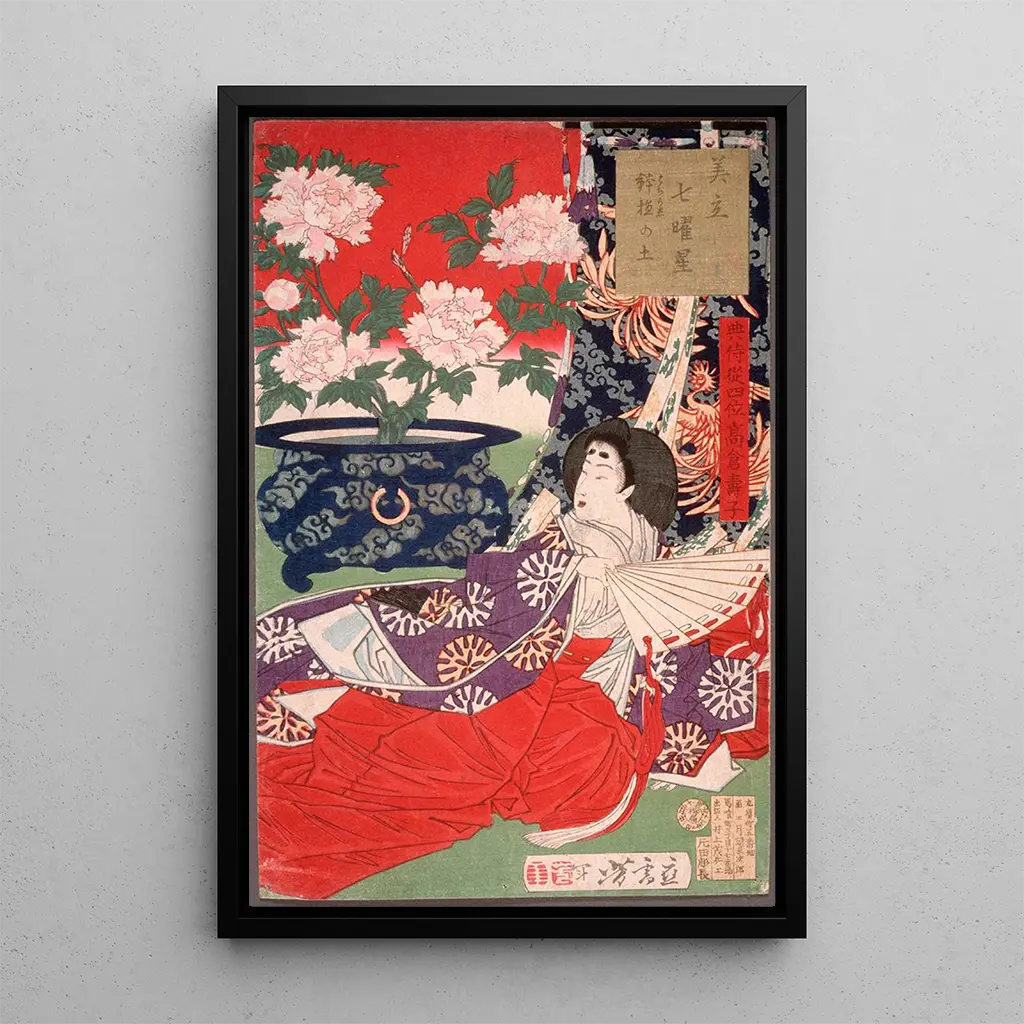Tsukioka Yoshitoshi, japanilaisen ukiyo-e-kiiltokuvan ikoni, on jättänyt jälkensä aikakauteensa ainutlaatuisella tyylillään ja kyvyllään vangita monimutkaisia tunteita. Hän toimi Edo-kaudella ja Meiji-ajan alussa, osaten navigoida tradition ja modernismin välillä, sisällyttäen nykyajan elementtejä teoksiinsa. Hän vaikutti yhteiskunnallisten ja poliittisten mullistusten aikana ja tutki erilaisia teemoja, aina luonnon kauneudesta historiallisiin kertomuksiin. "Terre pour la plante en pot" kuvaa täydellisesti hänen kykyään muuttaa yksinkertaisia kohtauksia syvällisiksi pohdinnoiksi elämästä ja luonnosta.