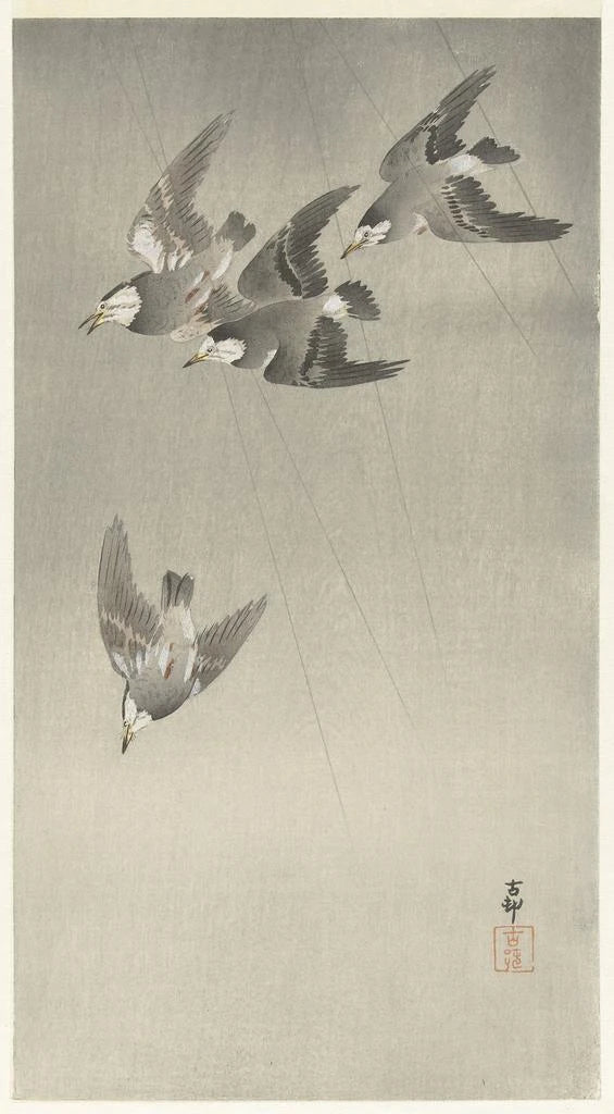 Taidetuloste | Varikset sateessa - Ohara Koson