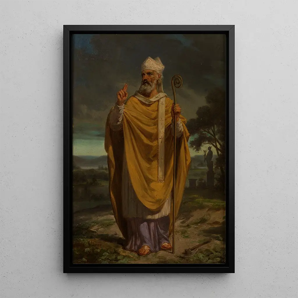 Taidegrafiikka "Saint Denis" kuljettaa meidät keskiajan henkiseen ja taiteelliseen maailmaan. Tämä teos, joka on täynnä symboliikkaa, kuvaa Pariisin suojeluspyhimystä rauhallisessa ja voimakkaassa asennossa. Elävät värit ja yksityiskohtaiset piirteet, jotka ovat tyypillisiä aikakauden uskonnolliselle taiteelle, luovat hartauden ja kunnioituksen ilmapiirin. Käytetty tekniikka, todennäköisesti öljy kankaalle, mahdollistaa tekstuurien ja sävyjen vaikuttavan esittämisen, tarjoten lähes kosketeltavan näkymän tämän ikonisen hahmon ympäröivään henkisyyteen.