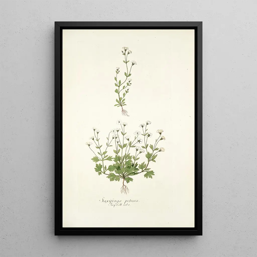 Nikolaus Joseph Freiherr von Jacquinin taidegrafiikka Saxifraga petaea -teoksesta kuljettaa meidät alppimaisemien sydämeen. Tämä kasvi-illustraatio korostaa tämän kasvin ainutlaatuisia piirteitä, herkistä kukista ja vahvoista lehdistä. Värikkäät sävyt ja tarkat yksityiskohdat paljastavat luonnon sisäisen kauneuden ja herättävät mielikuvan vuorten raikkaudesta. Jacquinin hallitsema akvarellitekniikka mahdollistaa valon ja varjon vangitsemisen, herättäen tämän kasviaiheisen taideteoksen eloon. Tämä taulu on todellinen kutsu tutkia alppilajiston monimuotoisuutta.