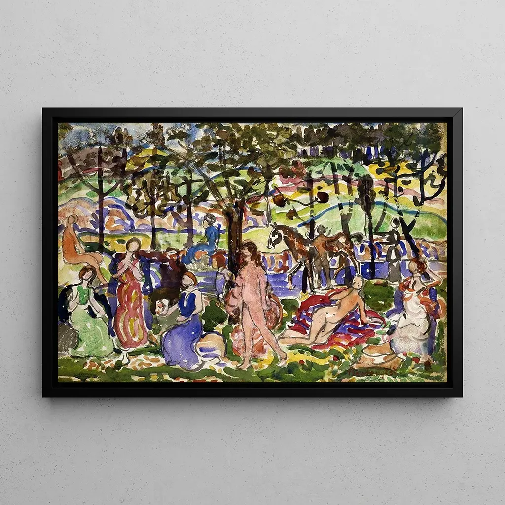 Scène de parc : une évasion bucolique au cœur de la nature La reproduction de Scène de parc de Maurice Prendergast évoque une atmosphère de sérénité et de joie. Les couleurs vives et lumineuses, typiques de l'artiste, plongent le spectateur dans un univers où la nature et l'humanité coexistent harmonieusement. Les touches de peinture, appliquées avec légèreté, créent un mouvement fluide, comme si le vent caressait les feuilles des arbres. Les personnages, souvent représentés dans des poses détendues, semblent profiter d'un moment de répit, invitant à la contemplation et à l'évasion. Cette toile, pleine de vie, capte l'essence d'une journée ensoleillée, où le parc devient un lieu de rencontre et de partage. Maurice Prendergast : un pionnier du post-impressionnisme américain Maurice Prendergast, actif à la fin du XIXe siècle et au début du XXe siècle, est reconnu comme un des maîtres du post-impressionnisme américain. Influencé par les mouvements européens, notamment le fauvisme, il développe un style unique, caractérisé par des couleurs éclatantes et des compositions dynamiques. Prendergast a souvent exploré les thèmes de la vie urbaine et des loisirs, capturant l'esprit de son époque. Ses œuvres, comme Scène de parc, témoignent d'une sensibilité à la beauté des moments simples, tout en reflétant les changements sociaux et culturels de son temps. Son héritage perdure, inspirant de nombreux artistes contemporains. Une acquisition décorative aux multiples atouts La reproduction de Scène de parc est une pièce décorative idéale pour apporter une touche de fraîcheur et de couleur à votre intérieur. Que ce soit dans un salon, un bureau ou une chambre, cette toile attire le regard et suscite des émotions positives. Sa qualité d'impression garantit une fidélité remarquable aux détails et aux couleurs originales, permettant de profiter pleinement de l'œuvre de Prendergast. Avec son attrait esthétique, cette reproduction s'intègre harmonieusement dans divers styles de décoration, du contemporain au classique, faisant d'elle un choix judicieux pour enrichir votre espace de vie.