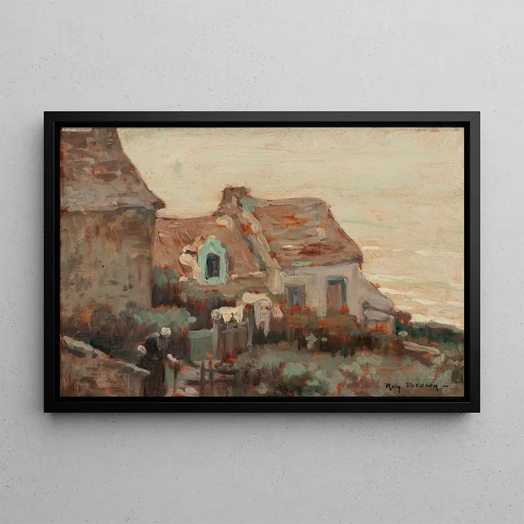 Scène de village en Bretagne : un tableau vivant de la ruralité bretonne La reproduction de la Scène de village en Bretagne transporte le spectateur au cœur d’un paysage bucolique, où la vie rurale s’épanouit sous un ciel changeant. Les couleurs vibrantes, allant des verts éclatants des champs aux nuances douces des maisons en pierre, créent une atmosphère chaleureuse et accueillante. La technique de Roy H Brown, mêlant impressionnisme et réalisme, permet de capturer la lumière naturelle, donnant vie aux personnages qui s’affairent dans ce cadre pittoresque. Chaque détail, des ombres projetées aux reflets sur les surfaces, contribue à une immersion totale dans cette scène de vie. Roy H Brown : un témoin de la beauté des paysages français Roy H Brown est un artiste dont le travail se concentre sur la représentation des paysages et des scènes de la vie quotidienne, particulièrement en Bretagne. Actif au début du XXe siècle, il s’inscrit dans un mouvement artistique qui valorise la beauté des régions rurales françaises, influencé par les courants impressionnistes. Son approche se caractérise par une attention particulière aux détails et une palette de couleurs qui évoque la lumière et l’atmosphère des lieux qu’il peint. Brown a su capturer l’essence de la Bretagne, un territoire riche en traditions et en paysages, faisant de lui un artiste incontournable pour ceux qui s’intéressent à l’art régional. Une acquisition décorative aux multiples atouts La reproduction de la Scène de village en Bretagne constitue une pièce décorative idéale pour divers espaces, qu'il s'agisse d'un salon, d'un bureau ou d'une chambre. Sa qualité d'impression et sa fidélité à l'œuvre originale en font un choix attrayant pour les amateurs d'art. En intégrant ce tableau dans votre décoration, vous apportez une touche de charme et de sérénité à votre intérieur, tout en célébrant la beauté des paysages français. Ce tableau invite à la contemplation et à l'évasion, transformant n'importe quel mur en une fenêtre ouverte sur la vie paisible d'un village breton.
