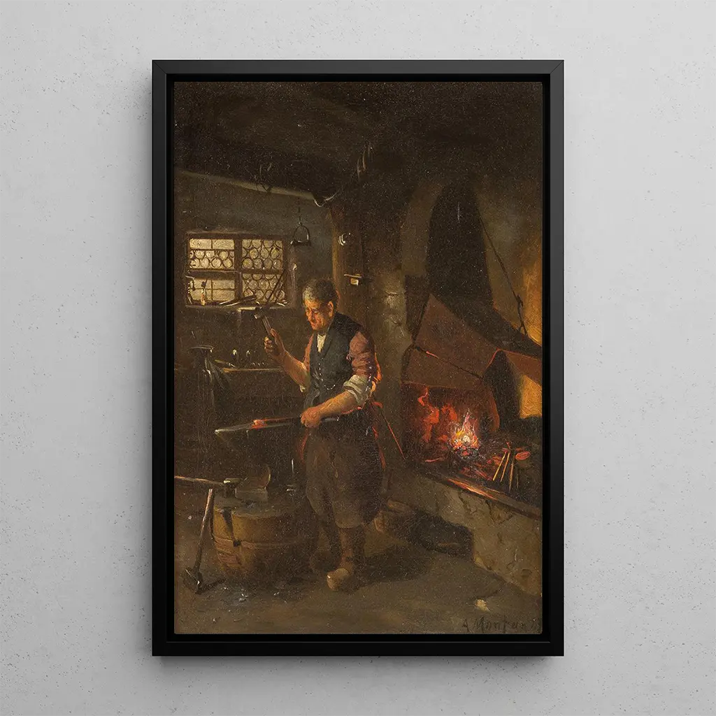 "Chez le forgeron" -taidegrafiikan reproduktio on koristeellinen kappale, joka rikastuttaa sisustustasi, olipa kyseessä olohuone, toimisto tai makuuhuone. Sen tarkka tulostuslaatu ja lämpimät värit tuovat aitouden ja rustiikkisen viehätyksen sisustukseesi. Sen esteettinen vetovoima piilee kyvyssä herättää tunteita ja kertoa tarinaa, muuttaen minkä tahansa tilan mietiskelyn paikaksi. Valitsemalla tämän taidegrafiikan, valitset teoksen, joka juhlistaa työtä ja perinteitä, ja sopii harmonisesti monenlaisiin sisustustyyleihin.