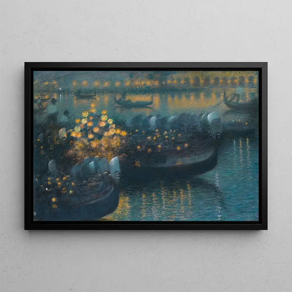 Sérénade au clair de lune à Venise : une mélodie visuelle sous les étoiles Dans cette taidegrafiikka de "Sérénade au clair de lune à Venise", Lucien Lévy-Dhurmer nous transporte dans une atmosphère romantique et poétique. La toile, baignée d'une lumière douce et argentée, évoque la magie des nuits vénitiennes. Les reflets sur l'eau, les silhouettes des gondoles et les bâtiments historiques créent une composition harmonieuse. Les couleurs, allant des bleus profonds aux nuances argentées, ajoutent une dimension rêveuse à l'œuvre. La technique de Lévy-Dhurmer, mêlant impressionnisme et symbolisme, donne vie à cette scène nocturne, invitant le spectateur à s'immerger dans cette taidegrafiikka. Lucien Lévy-Dhurmer : un maître du symbolisme et de l'impressionnisme Lucien Lévy-Dhurmer, actif à la fin du XIXe et au début du XXe siècle, est un artiste français reconnu pour ses œuvres qui capturent la beauté des paysages et des scènes intimistes. Influencé par le mouvement symboliste, il a su allier une technique raffinée à une sensibilité poétique. Son travail se distingue par l'utilisation de couleurs délicates et de jeux de lumière, caractéristiques de l'impressionnisme. Lévy-Dhurmer a également été un fervent défenseur de la beauté de la nature, ce qui transparaît dans ses œuvres. "Sérénade au clair de lune à Venise" est un exemple parfait de son talent à évoquer des émotions à travers des paysages enchanteurs. Une acquisition décorative aux multiples atouts Cette taidegrafiikka de "Sérénade au clair de lune à Venise" est une pièce décorative idéale pour enrichir votre intérieur. Que ce soit dans un salon, un bureau ou une chambre, elle apportera une touche de romantisme et d'élégance à votre décoration. La qualité de l'impression garantit une fidélité aux détails de l'œuvre originale, permettant de profiter pleinement de la magie de la scène. Avec son attrait esthétique indéniable, cette toile saura séduire vos invités et créer une ambiance apaisante et inspirante dans votre espace de vie.