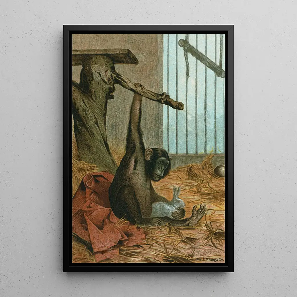 John George Wood, 1800-luvulla aktiivinen, tunnetaan eläinaiheisten kuvittustensa tarkkuudesta ja taiteellisesta herkkyydestä. Hän sai vaikutteita aikansa luonnontieteellisestä liikkeestä ja onnistui vangitsemaan eläinmaailman kauneuden ja monimuotoisuuden. Hänen teoksensa, usein julkaistuina tieteellisissä julkaisuissa, ovat lisänneet yleisön tietoisuutta faunasta ja florasta. Tämä taidegrafiikka "Chimpanzé" on osa tätä lähestymistapaa, jossa taiteilija ei ainoastaan esitä eläintä, vaan pyrkii välittämään tunteen ja ymmärryksen sen käyttäytymisestä.