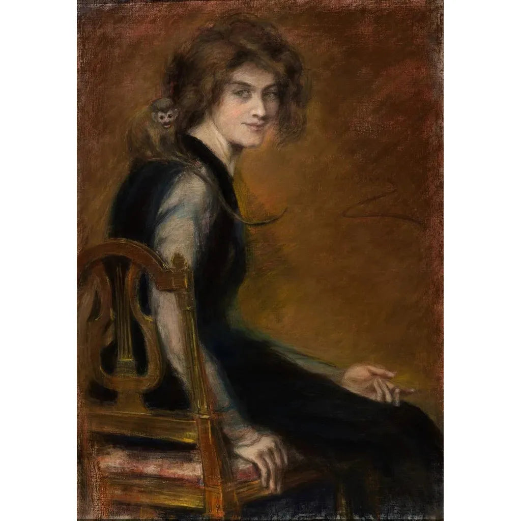 Tässä koskettavassa teoksessa Alice Pike Barney tarjoaa intiimin kohtauksen, jossa lemmikkisika seisoo emäntänsä vieressä. Kompositio on täynnä kirkkaita värejä ja ilmeikkäitä yksityiskohtia, jotka vangitsevat eläimen ja ihmisen välisen ainutlaatuisen suhteen. Taiteilija käyttää öljyvärimaalauksen tekniikoita luodakseen lämpimän ja kutsuvan ilmapiirin. Singe de compagnie -taidegrafiikan vaihdetut katseet paljastavat syvän läheisyyden, kutsuen katsojan pohtimaan jaetun tunteen syvyyttä. Tämä taidegrafiikka on ystävyyden ja hellyyden juhla.