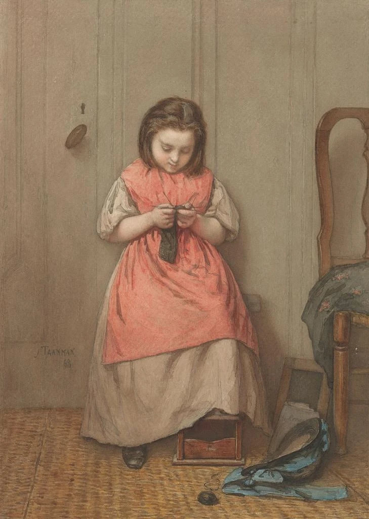 Taidetuloste | Sisätiloissa tyttö neulomassa - Jacob Taanman