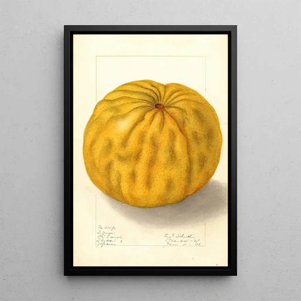 Taidegrafiikka Citrus grandis To Yuzu Ellen Isham Schuttilta kuljettaa meidät vehreään puutarhaan, jossa vihreän ja keltaisen sävyt sekoittuvat harmonisesti. Tämä taulu, huolellisesti toteutettu, korostaa yuzun ainutlaatuista kauneutta, joka on arvostettu sen hienostuneen tuoksun vuoksi. Hedelmän ja lehtien tarkat yksityiskohdat, yhdistettynä pehmeään valoon, luovat rauhallisen ja kutsuvan ilmapiirin. Taiteilija onnistuu vangitsemaan paitsi ulkonäön myös tämän hedelmän olemuksen, kutsuen katsojan arvostamaan luonnon rikkautta.