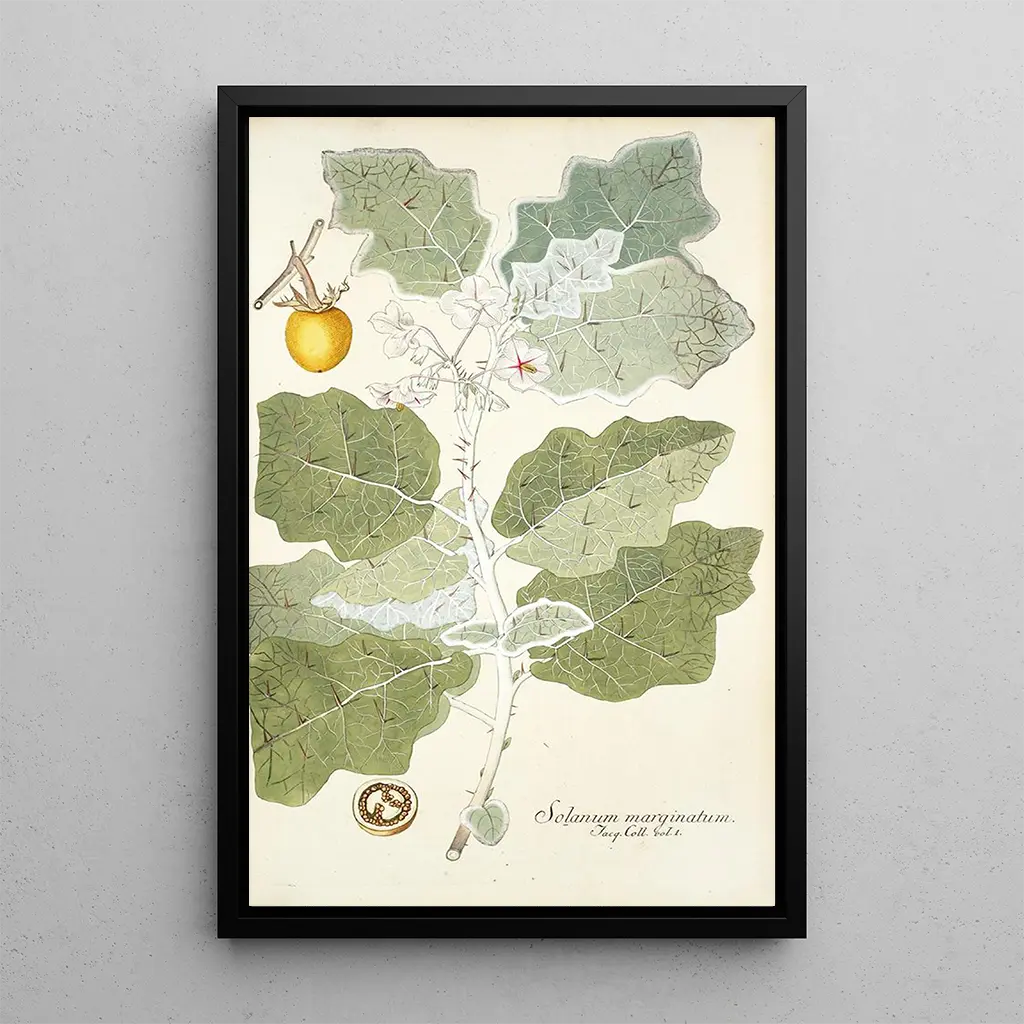Solanum marginatum -taidegrafiikka on koristeellinen teos, joka sopii koristamaan mitä tahansa tilaa. Olipa kyseessä olohuone, toimisto tai makuuhuone, tämä taulu tuo luonnon ja rauhan tunteen sisälle. Sen tulostuslaatu takaa upean uskollisuuden alkuperäisen teoksen väreille ja yksityiskohdille, mahdollistaen tämän kasvin kauneuden arvostamisen täysin. Sisällyttämällä tämän taulun sisustukseesi, lisäät paitsi taideteoksen, myös keskustelunaiheen, joka ilahduttaa vieraitasi.