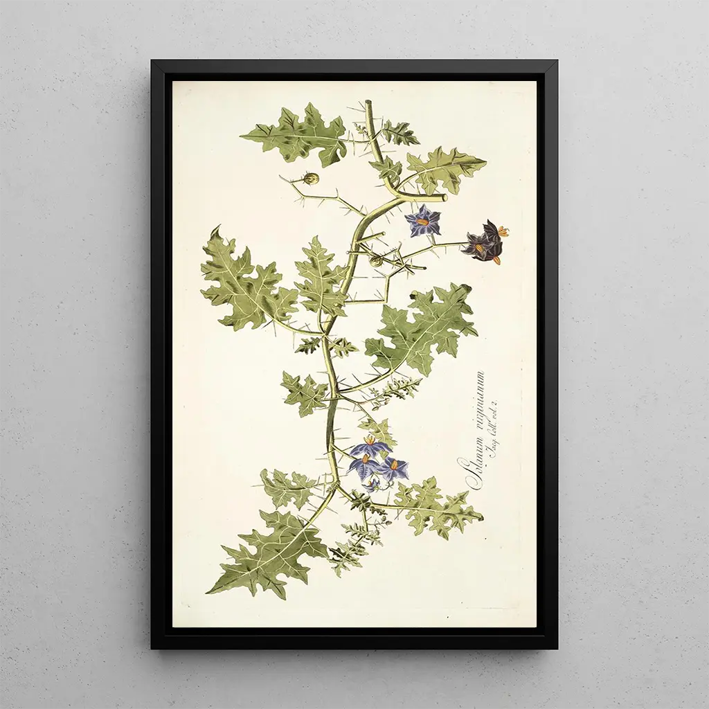 Valitsemalla Solanum virginianum -taidegrafiikan kopion, tuot lisää luonnon ja eleganssin kosketuksen sisätiloihisi. Tämä taulu, sopiva erilaisiin tiloihin kuten olohuoneeseen, toimistoon tai makuuhuoneeseen, erottuu laadukkaasta painatuksesta ja alkuperäisteoksen yksityiskohtien uskollisuudesta. Sen visuaalinen vetovoima ja kirkkaiden värien paletti tekevät siitä ihanteellisen valinnan niille, jotka haluavat rikastuttaa ympäristöään kasvitieteellisellä taideteoksella. Sisällyttämällä tämän taidegrafiikan osaksi sisustustasi, luot vastaanottavaisen ja inspiroivan ilmapiirin, samalla juhlistaen luonnon kauneutta.