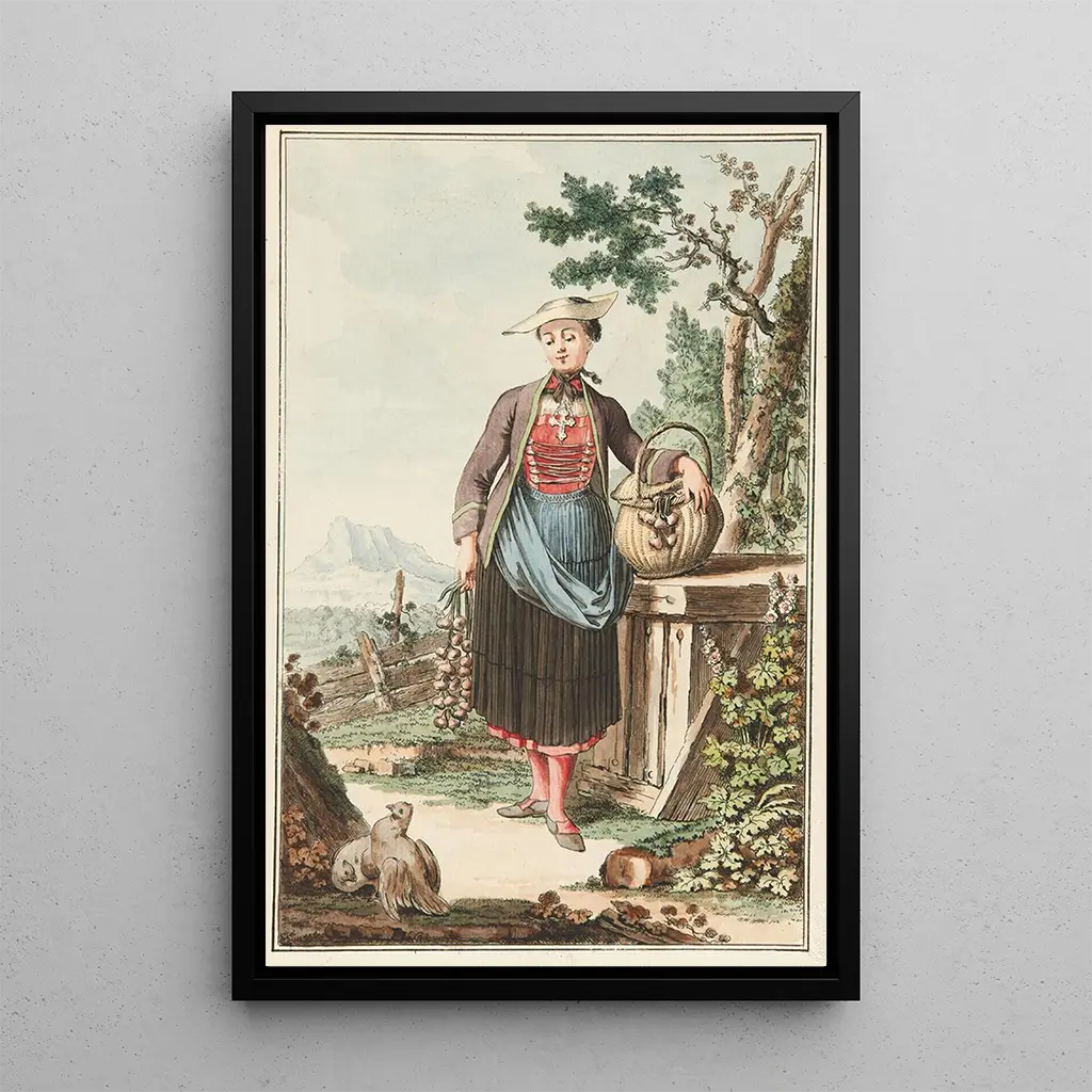 Taidegrafiikka Marchande d'oignons du Canton de Soleure -teoksesta johdattaa meidät elävään ja värikkääseen tunnelmaan, jossa yksityiskohtaiset kankaan pienet elementit paljastavat arjen yksinkertaisuudessaan. Sipulien lämpimät sävyt, vaatteiden maanläheiset vivahteet ja pehmeä valo, joka valaisee kohtauksen, luovat kiehtovan visuaalisen harmonian. Gottfried Locherin öljyväritekniikka mahdollistaa tekstuurien ja hahmojen ilmeiden vangitsemisen, tehden tästä teoksesta sekä realistisen että runollisen. Jokainen koosteen elementti vaikuttaa kertovan tarinan, kutsuen katsojan pysähtymään ja ihailemaan tätä ajassa pysähtynyttä hetkeä.