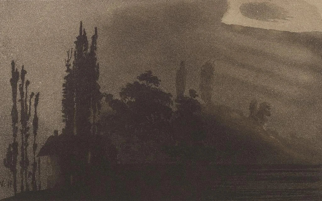 Dans "Souvenir d'un brouillard", Victor Hugo nous plonge dans une atmosphère brumeuse et mystérieuse. La composition se distingue par des nuances de gris et de bleu, créant une sensation de profondeur et de distance. Les formes floues, presque évanescentes, semblent se fondre dans un paysage onirique, où la lumière joue un rôle essentiel. Cette toile, à la technique délicate, évoque des souvenirs lointains, des émotions enfouies, et invite à une contemplation introspective. Chaque coup de pinceau témoigne de la maîtrise d'Hugo, qui parvient à capturer l'essence même de la nostalgie.