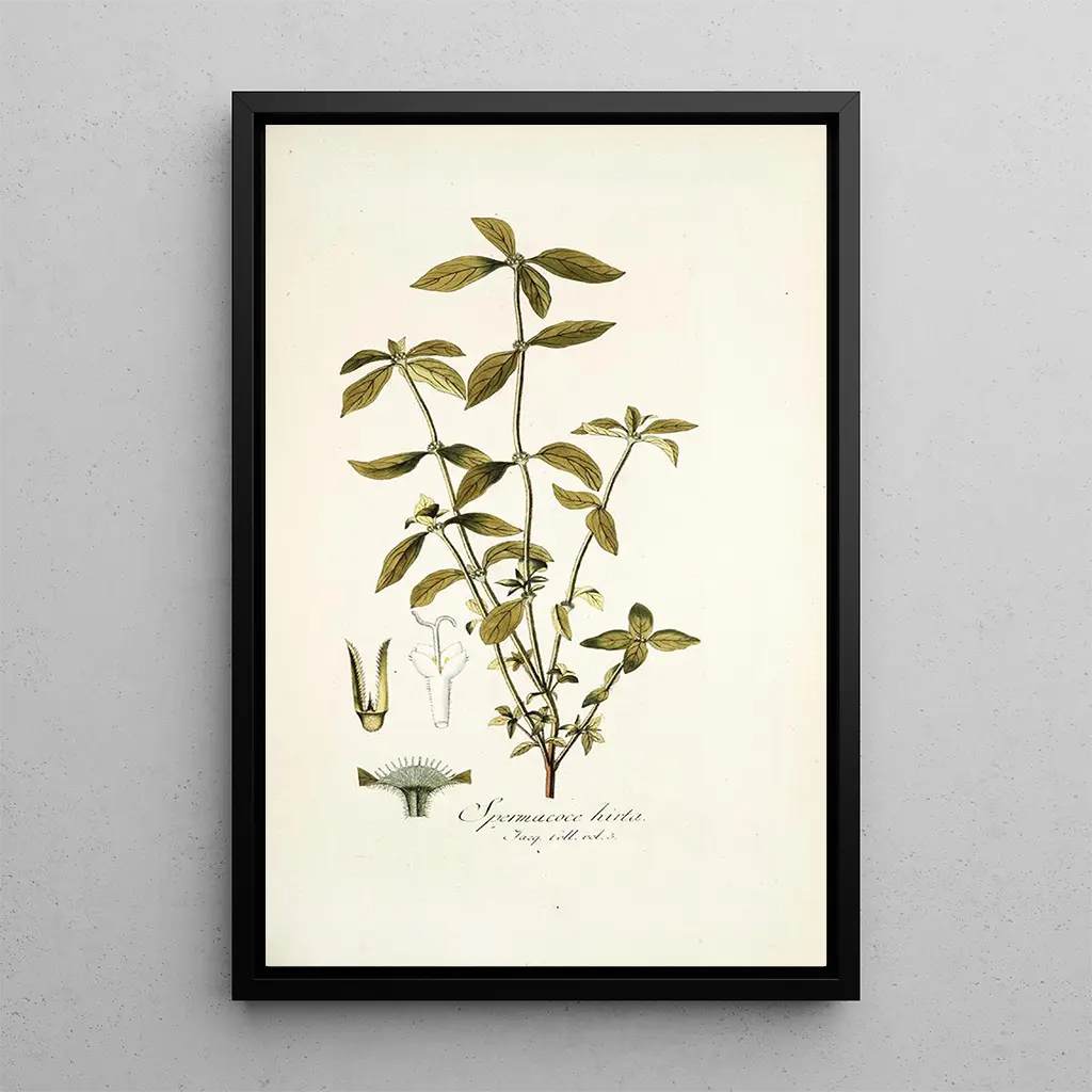 La reproduction Spermacoce hirta on erinomainen koriste-esine rikastuttamaan sisustustasi, olipa kyseessä olohuone, toimisto tai makuuhuone. Sen tulostuslaatu ja uskollisuus alkuperäisille yksityiskohdille tekevät siitä houkuttelevan valinnan kasvitieteen ja taiteen harrastajille. Lisäämällä tämän taulun osaksi sisustustasi, tuot lisää eleganssia ja rauhaa tilaan. Tämän teoksen luonnollinen kauneus hurmaa vieraasi ja luo harmonisen ilmapiirin, samalla juhlistaen trooppisen kasviston rikkautta.