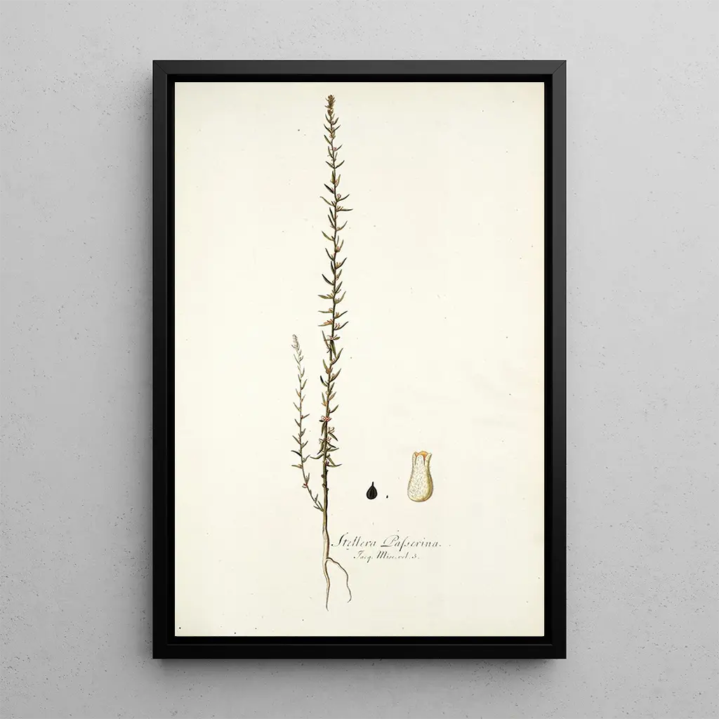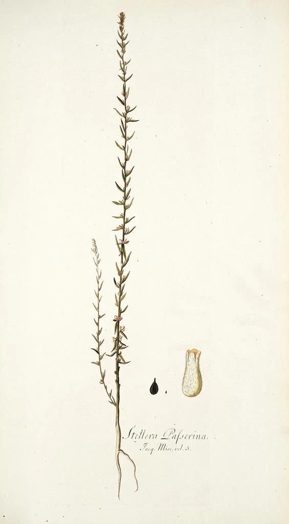 Nikolaus Joseph Freiherr von Jacquin, XVIII:n vuosisadan botaniikan ja taiteen edustaja, on ollut ratkaisevassa roolissa eksoottisten kasvien tutkimuksessa. Väliaisen Wienissä koulutettuna hänet vaikutti aikansa tieteelliset löydöt, erityisesti matkoillaan Etelä-Amerikkaan ja Karibian alueelle. Hänen teoksensa, kuten tämä taidegrafiikan Stellera passerina, todistavat hänen sitoutumisestaan yhdistää tiede ja taide. Jacquin on osallistunut kasvien luokitteluun samalla kun hän on ikuistanut ne kankaalle, mikä on tuonut hänelle merkittävän aseman taidehistoriassa. Hänen tyylinsä, sekä tiukka että runollinen, inspiroi yhä taiteen ja botaniikan harrastajia.