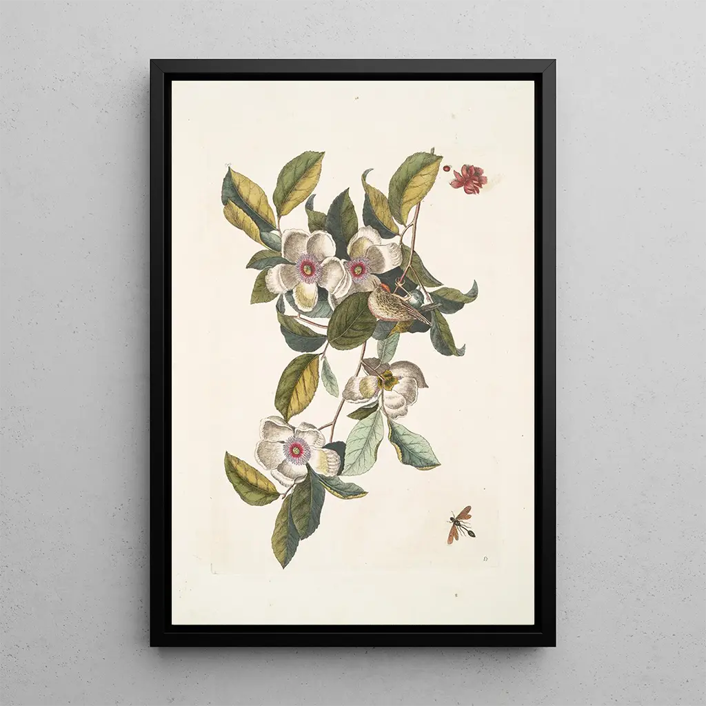 Mark Catesby, actif au XVIIIe siècle, est considéré comme l'un des premiers naturalistes à documenter la flore et la faune américaines avec une approche artistique. Son travail, influencé par le mouvement baroque, allie précision scientifique et esthétique visuelle. Catesby a voyagé à travers les colonies américaines, réalisant des illustrations qui ont non seulement enrichi la connaissance scientifique, mais ont également captivé le public. La taidegrafiikka Steuartia Regulus Cristatus Vespa Ichneumon illustre parfaitement son talent pour capturer la beauté de la nature, tout en soulignant l'importance de la conservation des espèces.