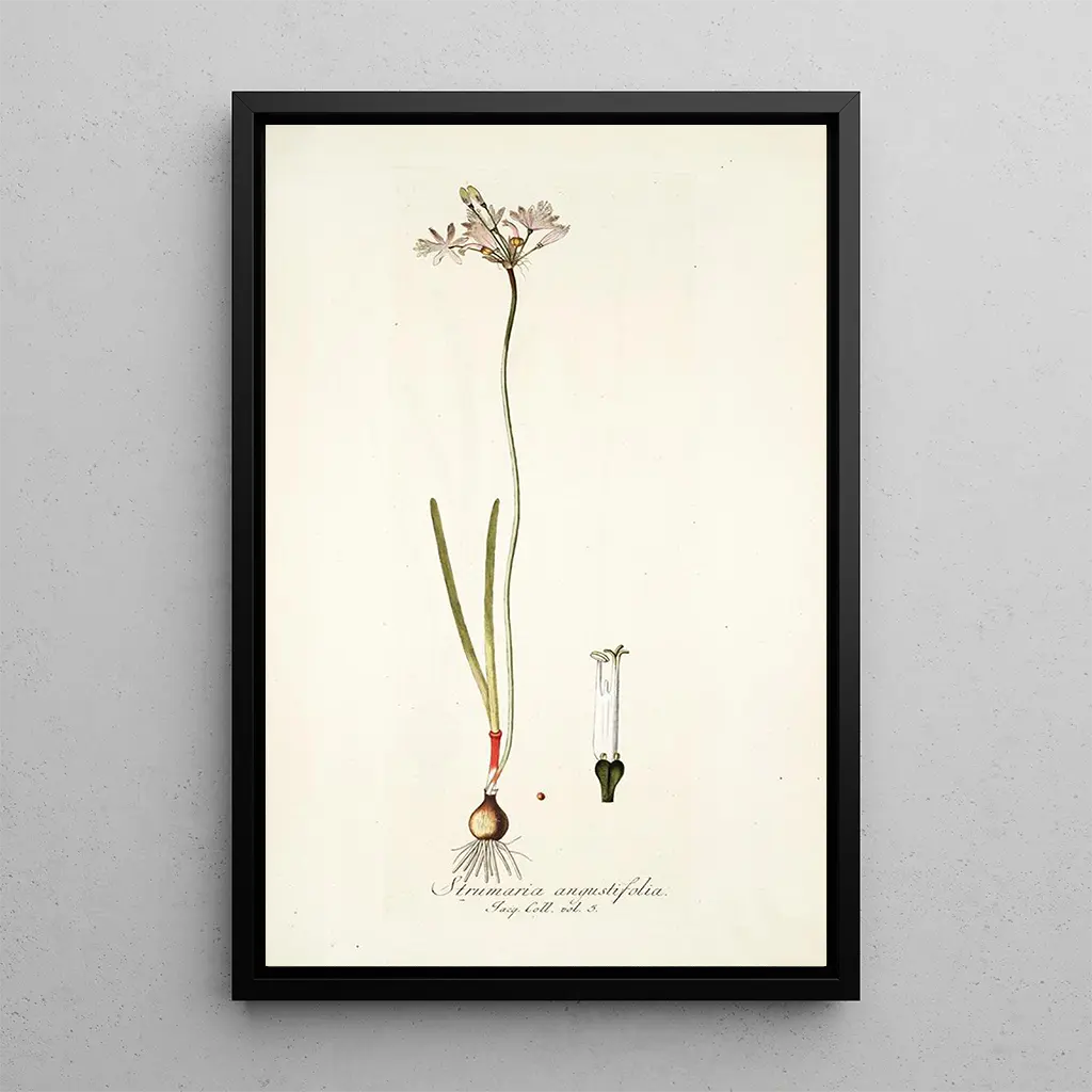 Nikolaus Joseph Freiherr von Jacquin, 1700-luvun kasvitieteilijä ja taiteilija, osasi yhdistää intohimonsa kasvitieteeseen ja taiteeseen. Hänen tutkimuksensa Amerikassa ja Etelä-Afrikassa rikastuttivat hänen tietämystään ja vaikuttivat hänen teoksiinsa. Reproduktiot kuten tämä Strumaria angustifolia -taidegrafiikkaa, mahdollistivat vähemmän tunnettuja lajeja tuleville sukupolville. Hänen tieteellinen lähestymistapansa, yhdistettynä taiteelliseen herkkyyteen, teki hänestä edelläkävijän kasvitieteellisessä kuvittamisessa, jättäen jälkensä aikaan ainutlaatuisella panoksellaan tieteeseen ja taiteeseen.