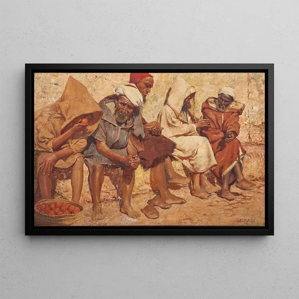 Dans Sur le banc, Tanger, François Alaux capture un instant de vie simple et authentique. La toile dépeint une scène ensoleillée où des personnages se reposent, entourés par l'architecture typique de Tanger. Les couleurs chaudes et lumineuses évoquent la chaleur du climat méditerranéen, tandis que les ombres délicates ajoutent de la profondeur à la composition. Alaux réussit à transmettre une atmosphère de tranquillité et de convivialité, invitant le spectateur à s'imaginer dans ce lieu idyllique, à partager un moment de calme et de contemplation.