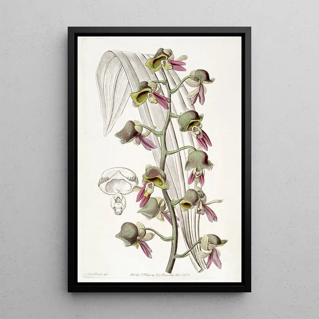 Taidegrafiikka Fleur de moine terne johdattaa meidät lempeyden ja rauhan maailmaan. Pastellisävyt, jotka vaihtelevat pehmeästä vihreästä hienovaraisen vaaleanpunaiseen, sekoittuvat kevyesti, mikä kuvaa tämän kasvin haurautta. Lithografiatekniikka, jota käyttää Sydenham Edwards, mahdollistaa yksityiskohtien vangitsemisen terävinä terälehdissä ja lehdissä, luoden lähes unenomaisen tunnelman. Jokainen elementti näyttää tanssivan valon alla, kutsuen katsojan rauhalliseen pohdintaan. Tämä teos on paljon enemmän kuin pelkkä kasvi-esitys, se on ylistys luonnon ohikiitävälle kauneudelle.