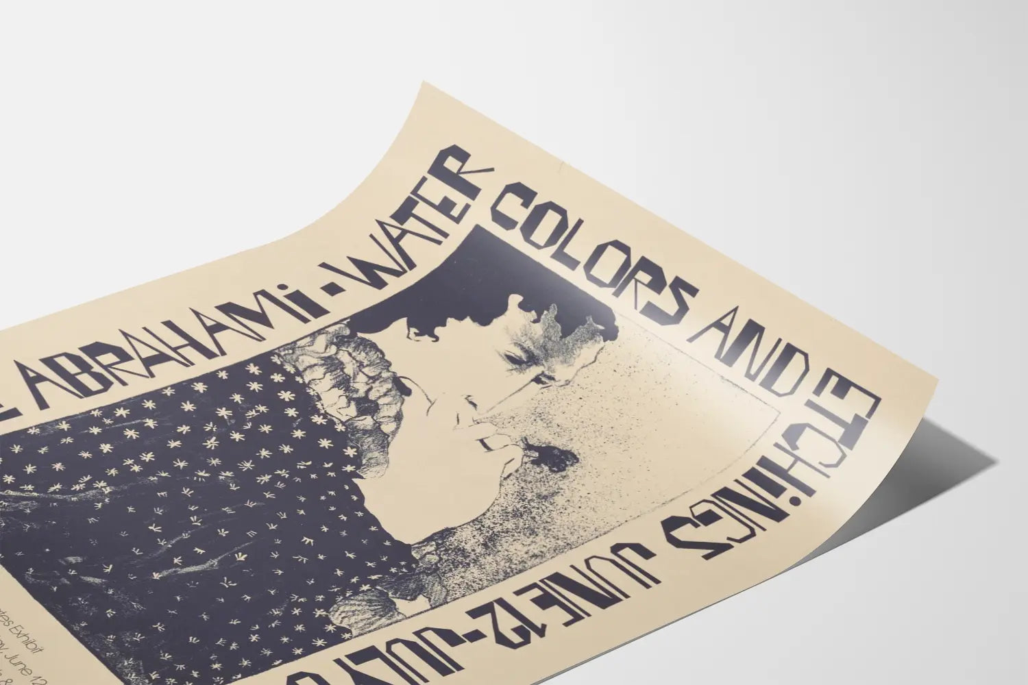 Tutustu tähän ainutlaatuiseen näyttelyjulisteeseen, joka esittelee Elie Abrahamin vesiväri- ja kaiverrustöitä vuodelta 1979. Tämä vintage-seinäkoristeen kappale ilmoittaa ensimmäisestä näyttelystä Yhdysvalloissa, joka pidettiin 12. kesäkuuta – 6. heinäkuuta. Keskuskuva esittää ilmeikkään muotokuvan, joka on toteutettu erottuvalla graafisella tyylillä sinisenä beigen taustan päällä, jossa yksityiskohtainen vaatetuksen ja kasvojen ilmeiden esitys ilmentää huomattavaa taiteellista hienostuneisuutta. Suurilla kirjaimilla varustetut typografiset merkit kehystävät kuvan, tuoden retro- ja aitouden tuntua tähän taidejulisteeseen. Lisäksi tämä juliste sisältää lisätietoja, kuten ennakkonäytösillan M. Abrahamin kanssa sekä sponsoreiden ja Washingtonin, D.C.:n sijainnin tiedot. Yksinkertaisen julisteen sijaan tämä juliste muuttuu keräilyesineeksi taiteen ja seinäkoristeiden harrastajille, jotka haluavat lisätä sisätiloihinsa historiallista ja kulttuurista vivahdetta. Ihanteellinen korostamaan toimistoa, olohuonetta tai henkilökohtaista galleriaa, se tarjoaa inspiroivan ja taiteellisen ilmapiirin, joka herättää intohimon graafisiin taiteisiin ja amerikkalaisen taidenäyttelyn historiaan 70-luvulla. Jokainen tämän julisteen elementti, väreistä valittuihin tyyliteltyihin fontteihin, vaikuttaa sen ainutlaatuiseen estetiikkaan, tehden siitä täydellisen vintage-plakaattien ja alkuperäisten seinäkoristeiden ystäville.