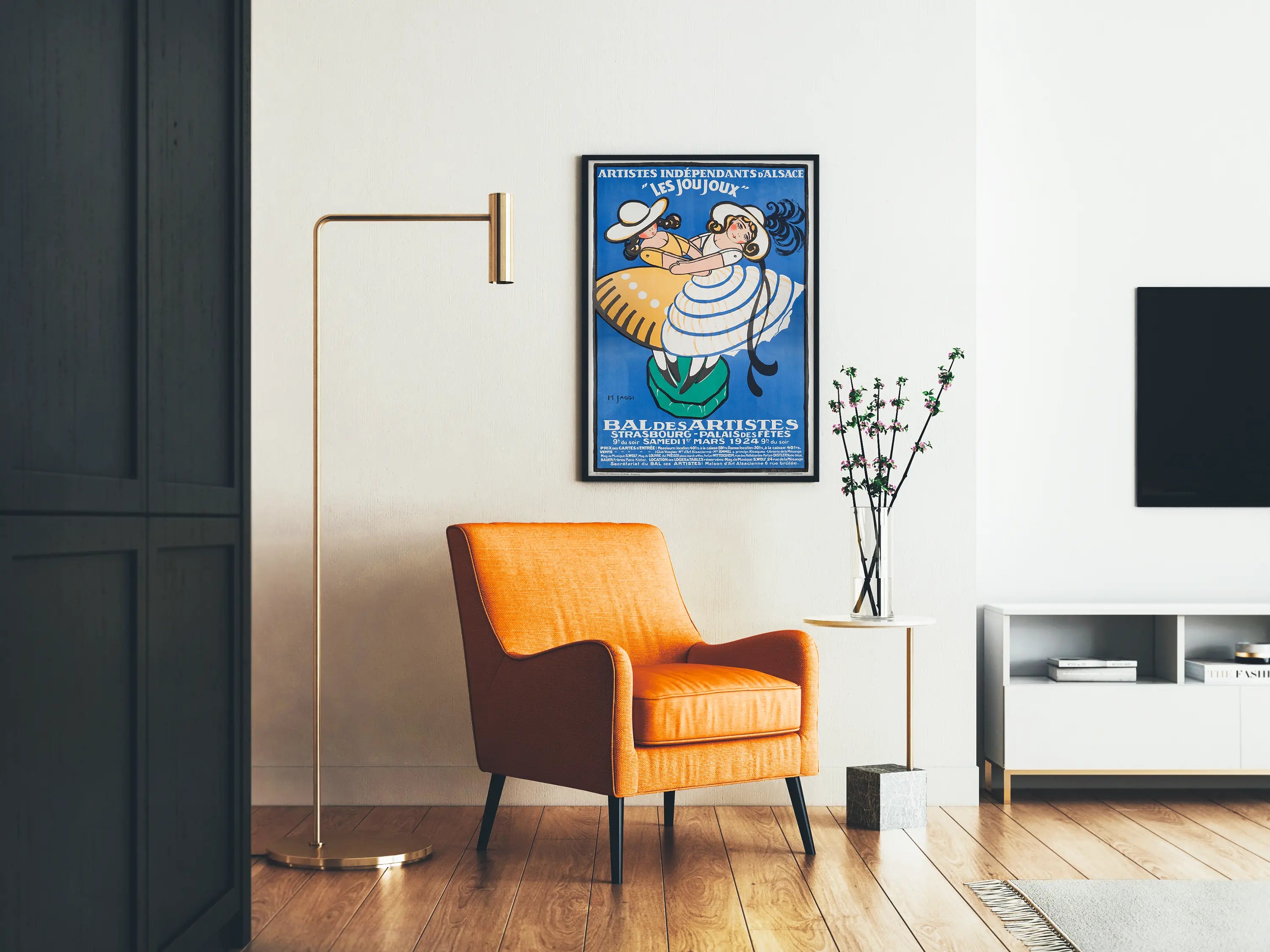 Olipa kyseessä vanhojen julisteiden kokoelma tai keskeinen osa nykyaikaista seinäkoristetta, tämä « Bal des Artistes » -juliste hurmaa viehättävällä ilmeellään ja yksinkertaisella mutta ilmeikkäällä graafisella tyylillään. Se on täydellinen valinta elävöittämään seinää aitoudella ja värillä.