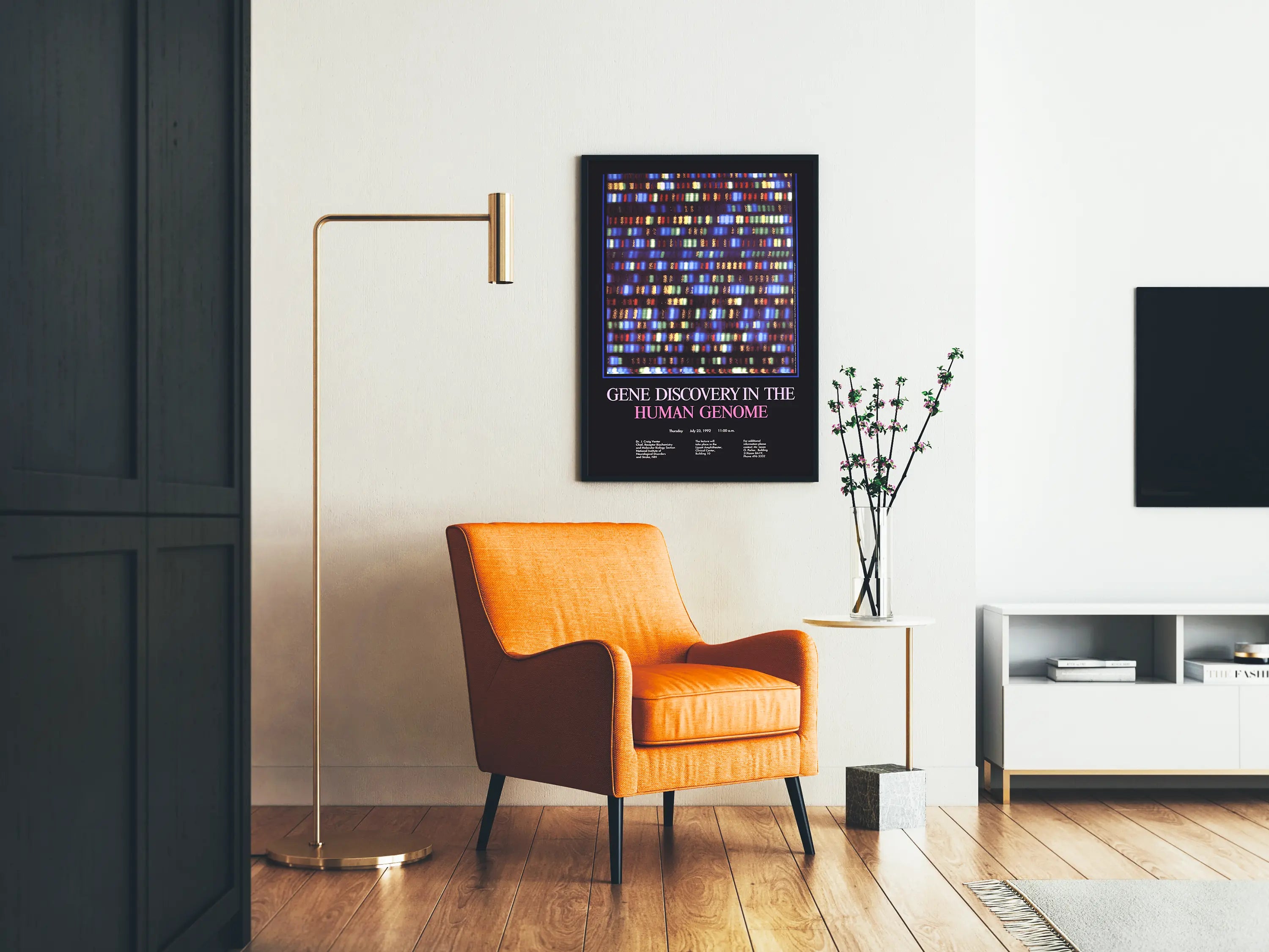 Taiteellinen juliste Ihmisen genomin geenien tutkimuksesta