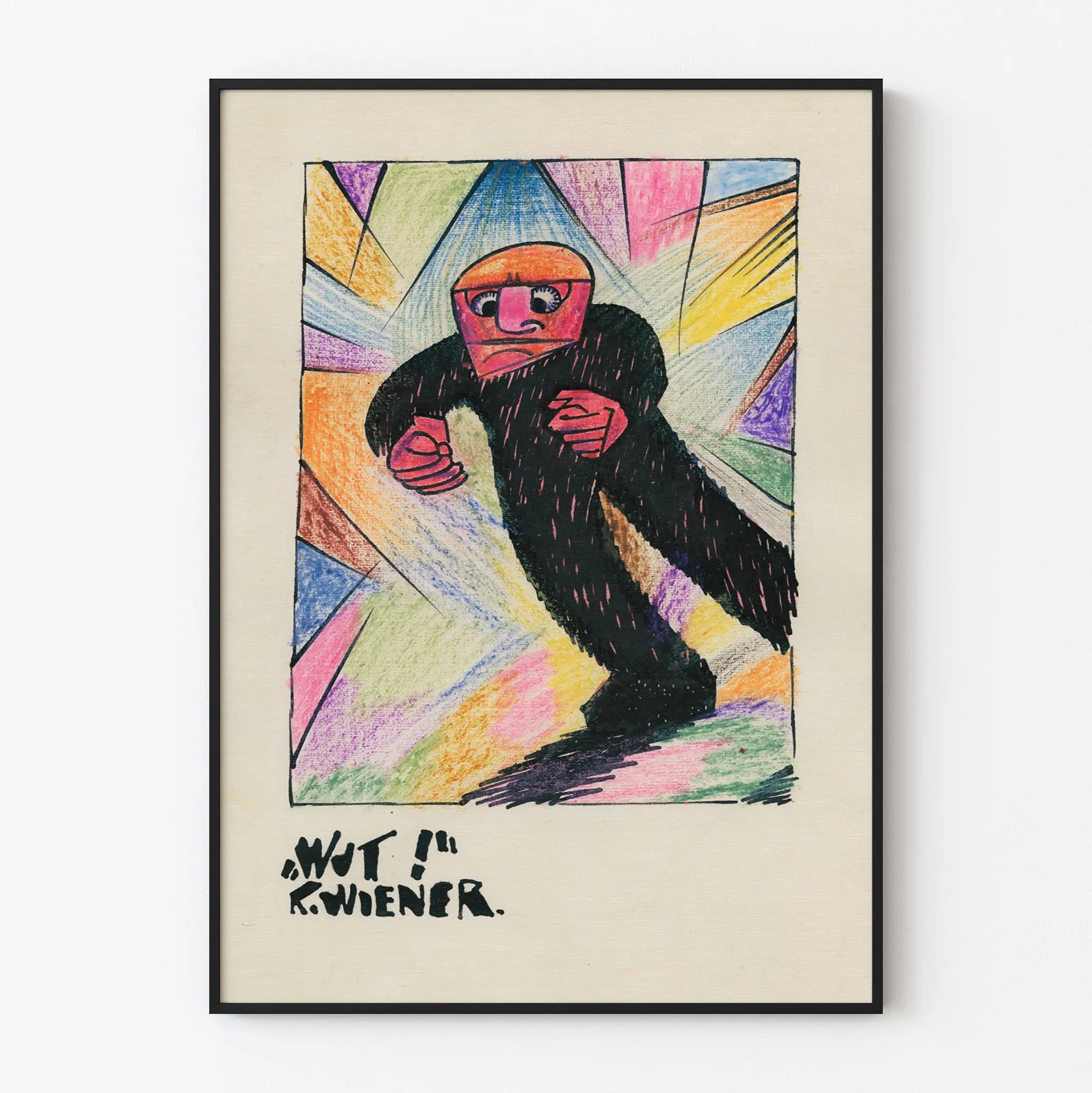 Taiteellinen juliste Wut de K. Wiener värikkäässä ekspressionistisessa tyylissä