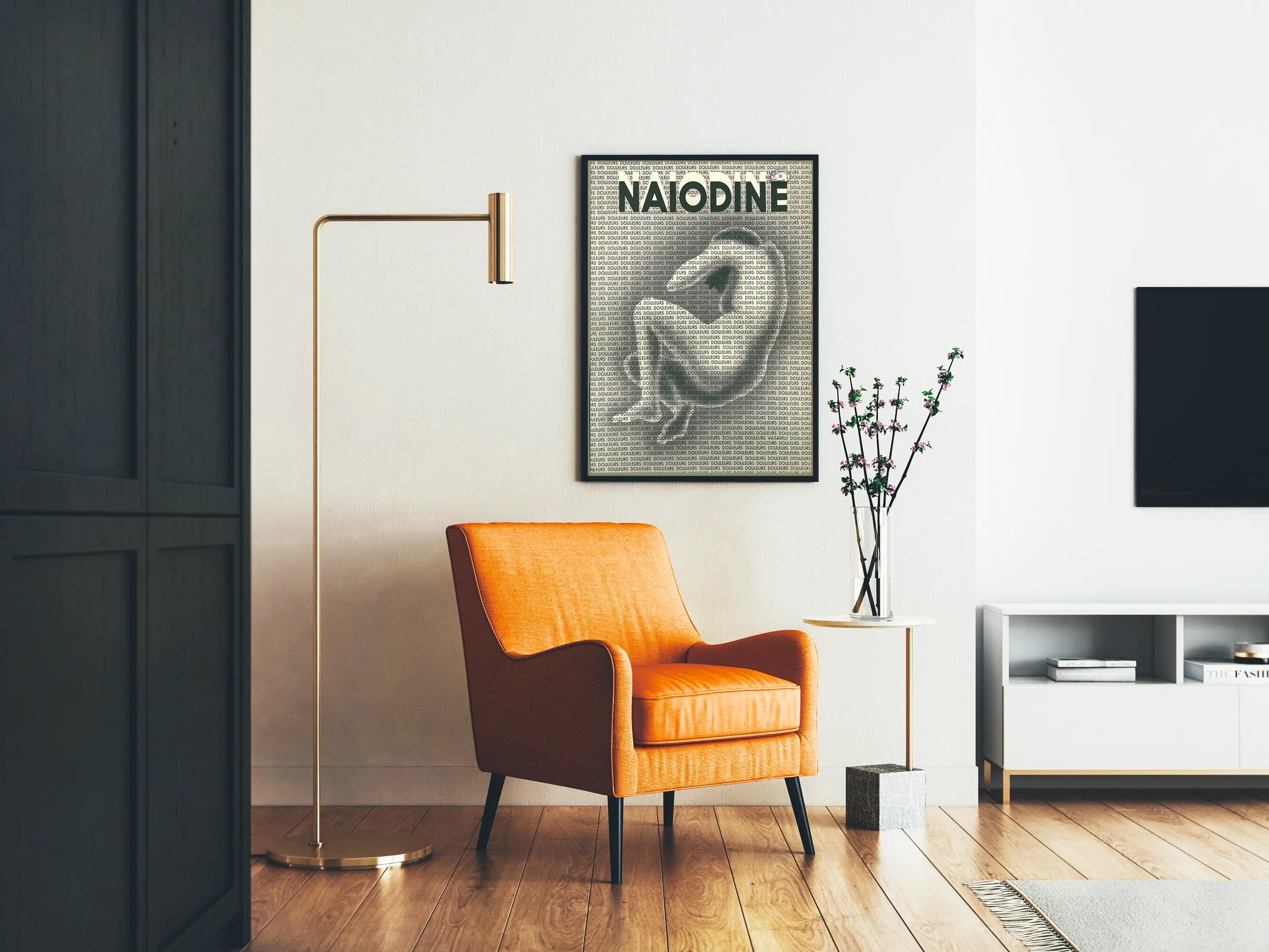Tämä vintage-tyylinen seinäjuliste korostaa nimeä "NAÏODINE" suurilla kirjaimilla, jotka erottuvat kontrastina tekstuurista taustalla, jossa toistuu tuhansia kertoja sana "DOLUUR". Typografinen leikki luo vahvan visuaalisen tunnelman, jossa tekstitausta muodostaa abstraktin siluetin taustalle, vahvistaen tämän seinäkoristeen graafista ja minimalistista luonnetta. Hieman yläoikealla painettu pyöreä leima lisää ripauksen retroa tähän kokonaisuuteen. Täydellinen niille, jotka arvostavat alkuperäisiä julisteita, joissa yhdistyvät typografinen ja konseptuaalinen taide, tämä graafinen taulu korostaa tekstin ja kuvan harmoniaa, ja on ihanteellinen sisustukseen nykyaikaisessa tai luovassa tilassa. Mustan ja beigen sävyihin perustuva yksivärinen väripaletti soveltuu helposti erilaisiin seinäkoristeisiin, tuoden ripauksen hienostuneisuutta ja pohdintaa. Tämä juliste herättää sekä taiteellista että herkkää maailmaa, vangiten huomion hypnotisoivalla "doluuri" -sanan toistolla ja minimalistisellä mutta voimakkaalla tyylillään. Erityisen seinäkoristeen luomiseksi, joka kutsuu mietiskelyyn ja keskusteluun, tämä juliste sopii täydellisesti olohuoneeseen, toimistoon tai taidegalleriaan, luoden mielenkiintoisen keskipisteen seinälle. Tasapainoinen koostumus ja vintage-estetiikka tekevät tästä julisteesta ainutlaatuisen ja ajattoman.