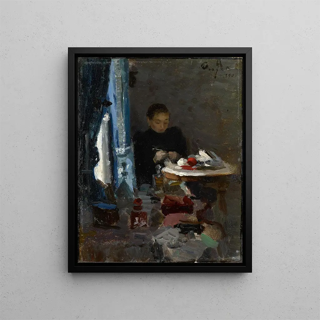 Alexej von Jawlenskyn tyyli yhdistetään usein ekspressionismin liikkeeseen, mutta hän ylittää perinteiset kategoriat ainutlaatuisella lähestymistavallaan. "La mère des artistes" erottuu rohkealla väripaletillaan, jossa sinisen ja punaisen sävyt kietoutuvat luoden lämpimän ja melankolisen tunnelman. Muodot ovat yksinkertaistettuja ja tyyliteltyjä, mikä osoittaa etsinnän olemuksesta enemmän kuin yksityiskohdista. Tämä esteettinen valinta antaa teoksen resonoida voimakkaasti emotionaalisesti, koskettaen katsojaa syvästi. Äidillisen figuurin esittäminen, sekä suojeleva että inspiroiva, korostuu pehmeän valon avulla, joka ympäröi aihetta ja luo lähes pyhän tunnelman. Tämä teos on täydellinen esimerkki taiteen kyvystä herättää monimutkaisia tunteita yksinkertaisilla visuaalisilla keinoilla.