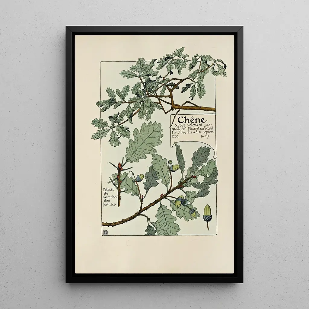Maurice Pillard Verneuil'n taidegrafiikka Chêne kuvaa puiden suuruutta, jotka symboloivat voimaa ja pysyvyyttä. Kompositio erottuu rikkaiden vihreiden ja ruskeiden sävyjen ansiosta, jotka upottavat katsojan rauhalliseen ja mietiskelevään tunnelmaan. Taiteilijan tekniikka, joka yhdistää impressionismin ja realismin, mahdollistaa valon läpäisevän lehvästön vangitsemisen, luoden kiehtovan varjojen ja valojen leikin. Jokainen yksityiskohta, hienoista lehdistä karkean kuoren tekstuureihin, lisää rauhoittavaa tunnelmaa ja kutsuu luonnon keskelle unelmointiin.