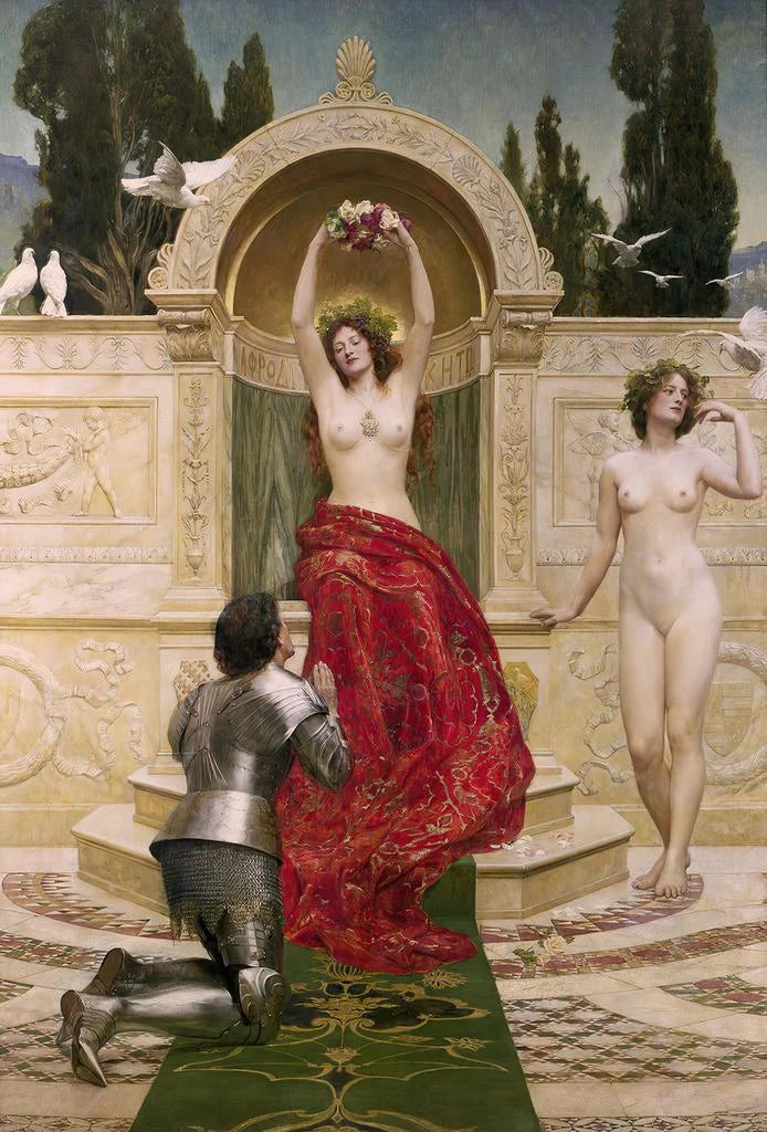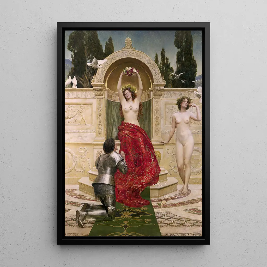 Tässä kiehtovassa teoksessa John Collier johdattaa meidät keskelle keskiaikaista legendaa, jossa Tannhäuser, jonglööri, löytää itsensä Venusin lumotusta valtakunnasta. Kompositio on rikas yksityiskohdissa, ja kirkkaat värit herättävät intohimon ja kauneuden tunteita. Punaisen ja kullan sävyt hallitsevat, luoden sekä mystisen että aistillisen ilmapiirin. Collierin tekniikka, joka yhdistää realismia ja symboliikkaa, mahdollistaa hahmojen tunteiden voimakkuuden kokemisen, kun taas rehevä tausta vahvistaa tämän kohtauksen satumaista luonnetta.
