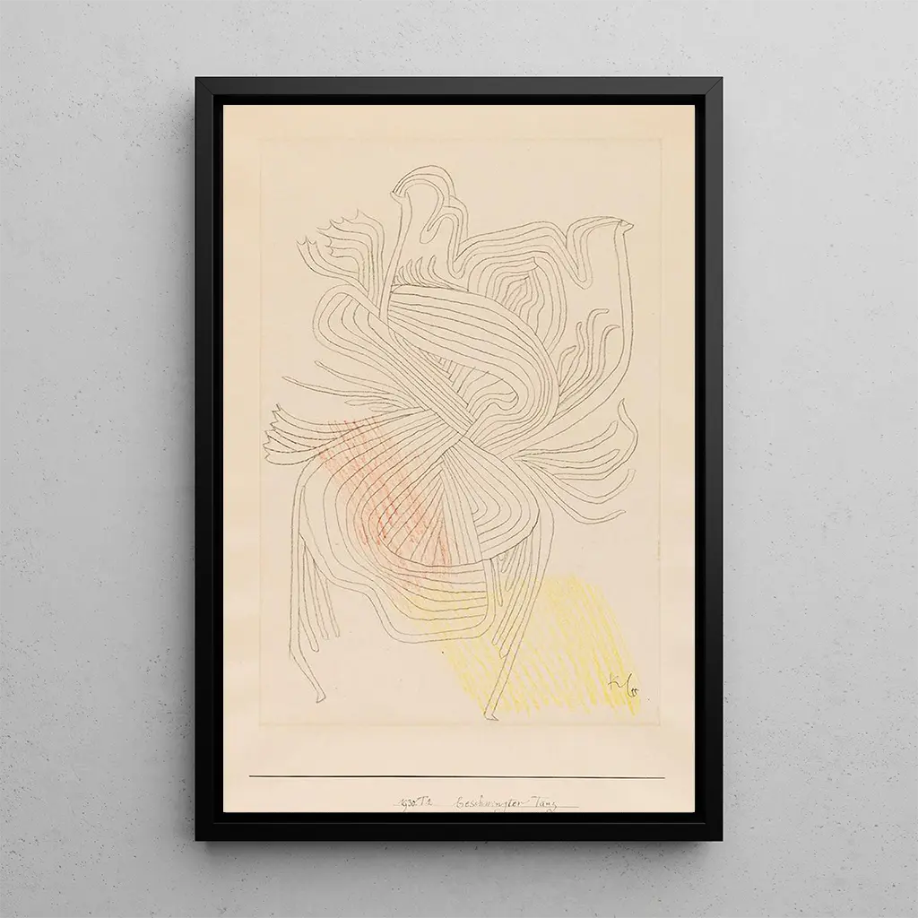 Paul Klee, syntynyt vuonna 1879, on yksi 1900-luvun vaikutusvaltaisimmista taiteilijoista, tunnettu innovatiivisesta lähestymistavastaan väriin ja muotoon. Bauhausin jäsenenä hän tutki taiteen ja musiikin vuorovaikutusta, pyrkien ilmaisemaan monimutkaisia tunteita yksinkertaisilla muodoilla. "Danse enjouée" kuvaa täydellisesti hänen ainutlaatuista tyyliään, yhdistäen abstraktioita ja figuuria, ja osoittaa hänen kiinnostuksensa liikkeeseen ja ilmaisuun. Klee on onnistunut vakiinnuttamaan asemansa modernin taiteen mestarina, jättäen kestävän perinnön, joka inspiroi yhä.
