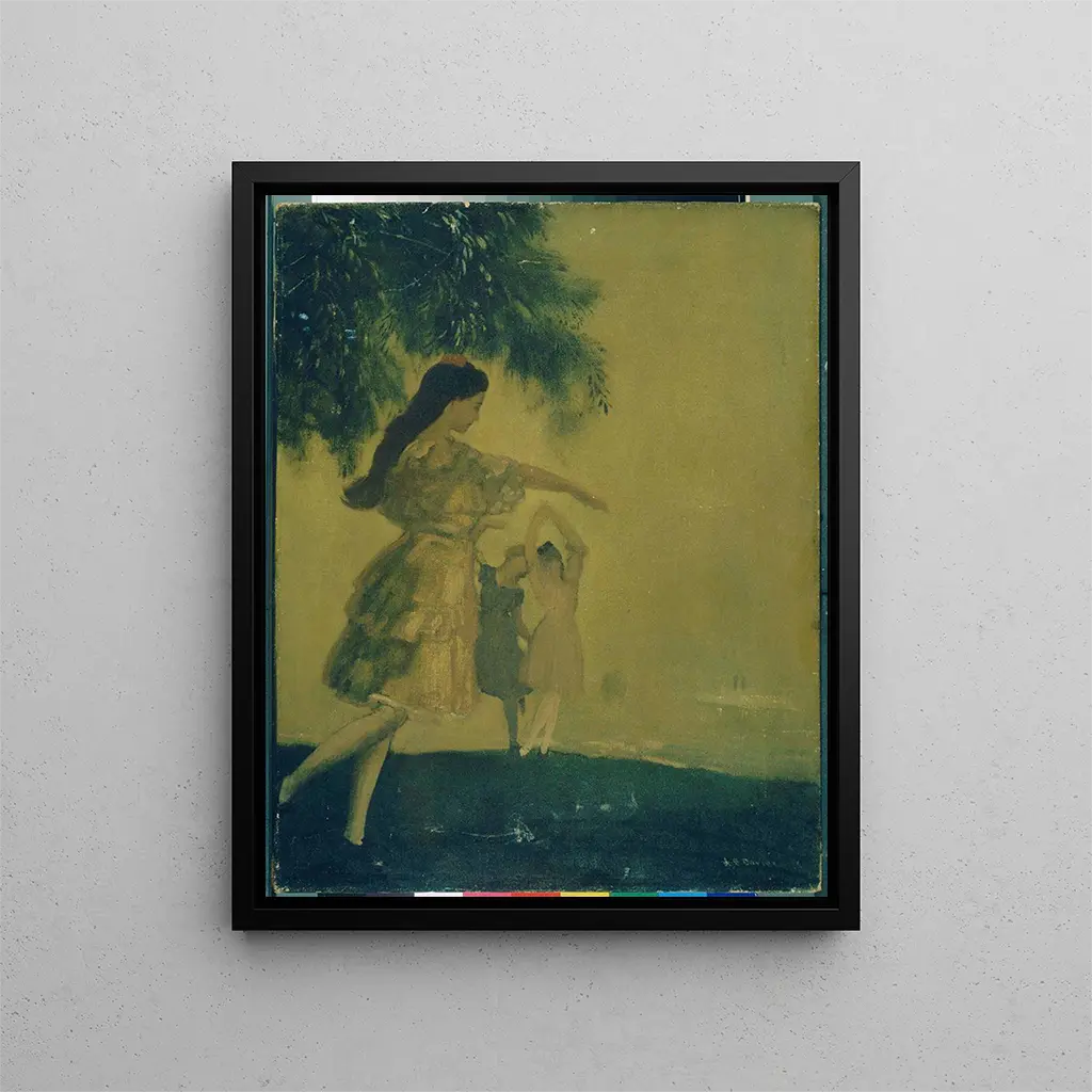 Reproduction Les Danseurs - Arthur Bowen Davies – Johdanto kiehtovasti Kiehtovan taiteen maailmassa jotkut teokset onnistuvat vangitsemaan ihmisen tunteen ytimen. "Les Danseurs" Arthur Bowen Daviesilta on kiistatta yksi näistä teoksista. Tämä maalaus, joka on täynnä runoutta ja eleganssia, kuvaa maailmaa, jossa tanssi ylittää pelkän liikkeen ja muuttuu todelliseksi elämän juhlapäiväksi. Hahmot, sekä eteeriset että eloisat, näyttävät kohoavan maan yläpuolella kuin ne olisivat harmoniassa näkymättömän musiikin kanssa. Valo, joka valaise sceneä, luo lähes taianomaisen tunnelman, kutsuen katsojan sukeltamaan maailmaan, jossa aika pysähtyy ja kauneus hallitsee. Teoksen tyyli ja ainutlaatuisuus Arthur Bowen Daviesin tyyliä leimaa ainutlaatuinen lähestymistapa, joka yhdistää symbolismin ja impressionismin. "Les Danseurs" -teoksessa hän onnistuu yhdistämään nämä kaksi taidesuuntausta, luoden teoksen, joka ei pelkästään kuvaa todellisuutta, vaan pyrkii ilmaisemaan sen olemuksen. Värit, sekä kirkkaat että hienovaraiset, sekoittuvat harmonisesti luoden unenomaisen tunnelman. Tanssijoiden muodot, jotka ovat sulavia, viestivät keveyttä, joka näyttää haastavan painovoiman. Tämä tyylillinen valinta mahdollistaa Daviesille jatkuvan liikkeen tunteen välittämisen, ikään kuin hahmot olisivat valmistautumassa hyppäämään ikuiseen tanssiin. Kyky vangita liike ja tunne tekee "Les Danseurs" -teoksesta syvällisen ja harvinaisen kauniin. Taiteilija ja hänen vaikutuksensa Arthur Bowen Davies, 1900-luvun alun yhdysvaltalainen taiteilija, pidetään usein symbolistisen maalaustaiteen pioneerinä. Hänen uransa, vaikkakin suhteellisen lyhyt, jätti pysyvän jäljen taiteen maailmaan. Davies oli syvästi vaikutteita saanut nykyliikkeistä, mutta hän kehitti oman tyylinsä, joka keskittyi luonnon, mytologian ja henkisyyden teemoihin. "Les Danseurs" kuvastaa täydellisesti tätä etsintää ylivertaisesta kauneudesta, jossa taide muuttuu keinoksi tutkia ihmisen kokemuksen syvimpiä ulottuvuuksia. Hänen vaikutuksensa on nähtävissä monissa seuraavissa taiteilijoissa, ja