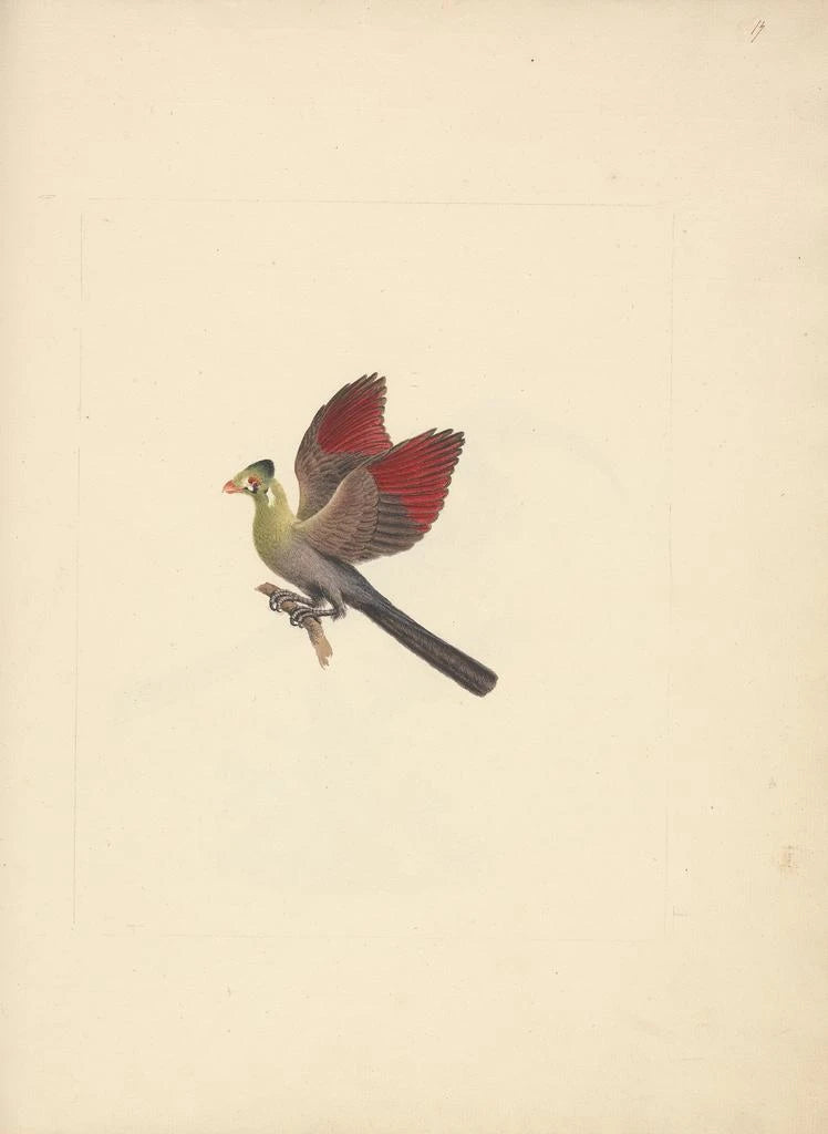 Tauraco leucotis : värikäs lintuaiheinen taidegrafiikka
