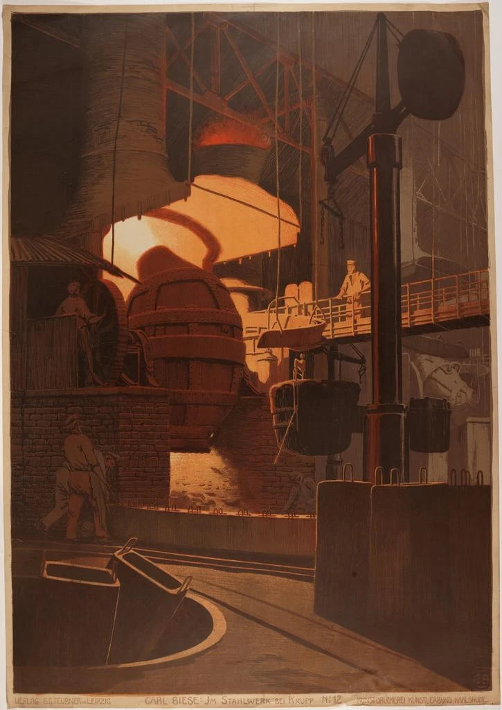 Kruppin terästehtaan tehtaalla: teollisen voiman taidegrafiikka