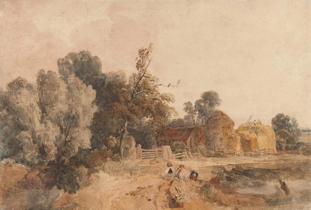 Dans "Temps de récolte", Peter DeWint capture l'essence d'une scène bucolique où la nature s'épanouit sous les rayons dorés du soleil. Les couleurs vibrantes de l'œuvre, allant des verts luxuriants aux jaunes éclatants, évoquent une atmosphère de joie et de sérénité. La technique de l'aquarelle, maîtrisée par DeWint, permet de créer des nuances délicates et des textures riches, donnant vie à chaque élément du tableau. Les personnages, engagés dans la récolte, ajoutent une dimension humaine à cette célébration de la terre, invitant le spectateur à contempler la beauté du monde rural.