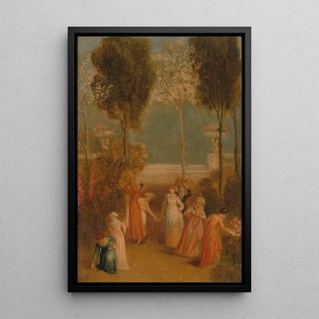 "Le Jardin" Thomas Stothardilta kuvaa idyllistä tilaa, jossa luonto kukoistaa loistossaan. Tämä taidegrafiikka, joka on täynnä yksityiskohtia, esittelee runsaan määrän värikkäitä kukkia ja reheviä lehtiä, luoden rauhan ja mietiskelyn tunnelman. Värikkäät sävyt punaisesta, keltaisesta ja vihreästä sekoittuvat harmonisesti, kun luonnonvalo valaisee kohtauksen, korostaen kukkivien elementtien kauneutta. Stothardin tekniikka, joka yhdistää tarkkuuden ja hienostuneisuuden, mahdollistaa tämän puutarhan raikkauden kokemisen ja kutsuu katsojan eksymään sen maailmaan.