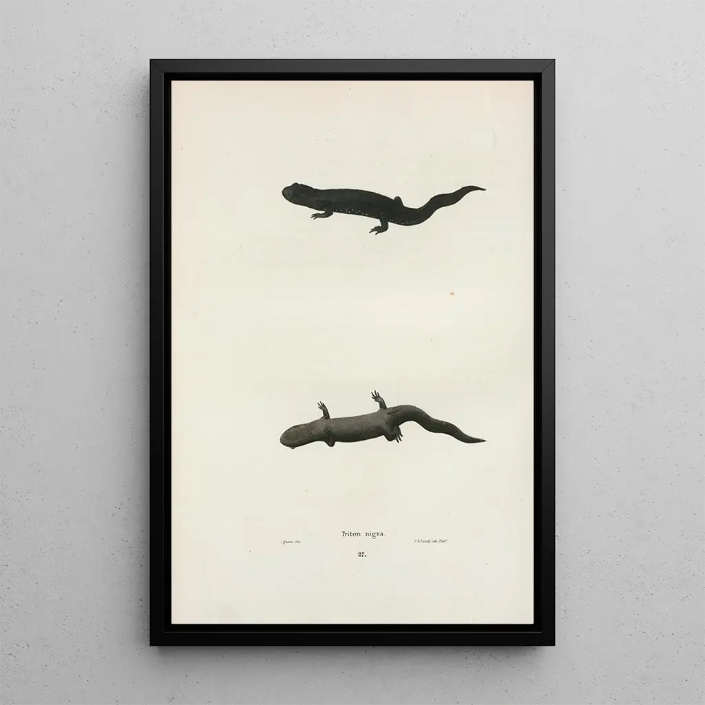 Le tableau Triton noir de John Edwards Holbrook vangitsee meren salaperäisen ja kiehtovan olemuksen. Syvänsinisten sävyjen ja iridesenssin vivahteiden avulla teos luo rauhallisen ja salaperäisen tunnelman. Vesiväritekniikka mahdollistaa hienovaraiset värisävyt, jotka herättävät henkiin tämän merenelävän, Triton noirin, jonka yksityiskohdat on toteutettu poikkeuksellisen tarkasti. Teoksen tunnelma kutsuu katsojan sukeltamaan merenalaiseen maailmaan, jossa jokainen sivellinvedos vaikuttaa kertovan unohtuneen tarinan syvyyksistä.