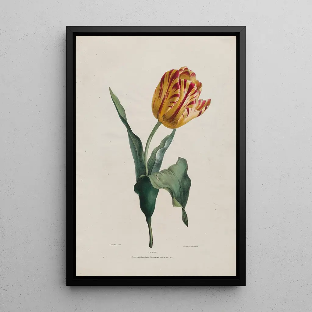 Valentine Bartholomew, 1800-luvulla aktiivinen, tunnetaan kukkamaalauksistaan, jotka vangitsevat luonnon olemuksen. Romanttisen liikkeen vaikutuksesta hänen työnsä heijastaa erityistä herkkyyttä luonnon elementteihin. Hän on onnistunut erottumaan taiteellisessa maailmassa, jossa hallitsevat historialliset ja mytologiset aiheet, valitsemalla juhlistaa kukkien yksinkertaista kauneutta. Hänen ainutlaatuinen lähestymistapansa ja tarkka yksityiskohtien huomio tekevät hänestä merkittävän hahmon kukkamaalauksen alalla, ja tämä taidegrafiikka Tulipaani todistaa hänen kyvykkyytensä.
